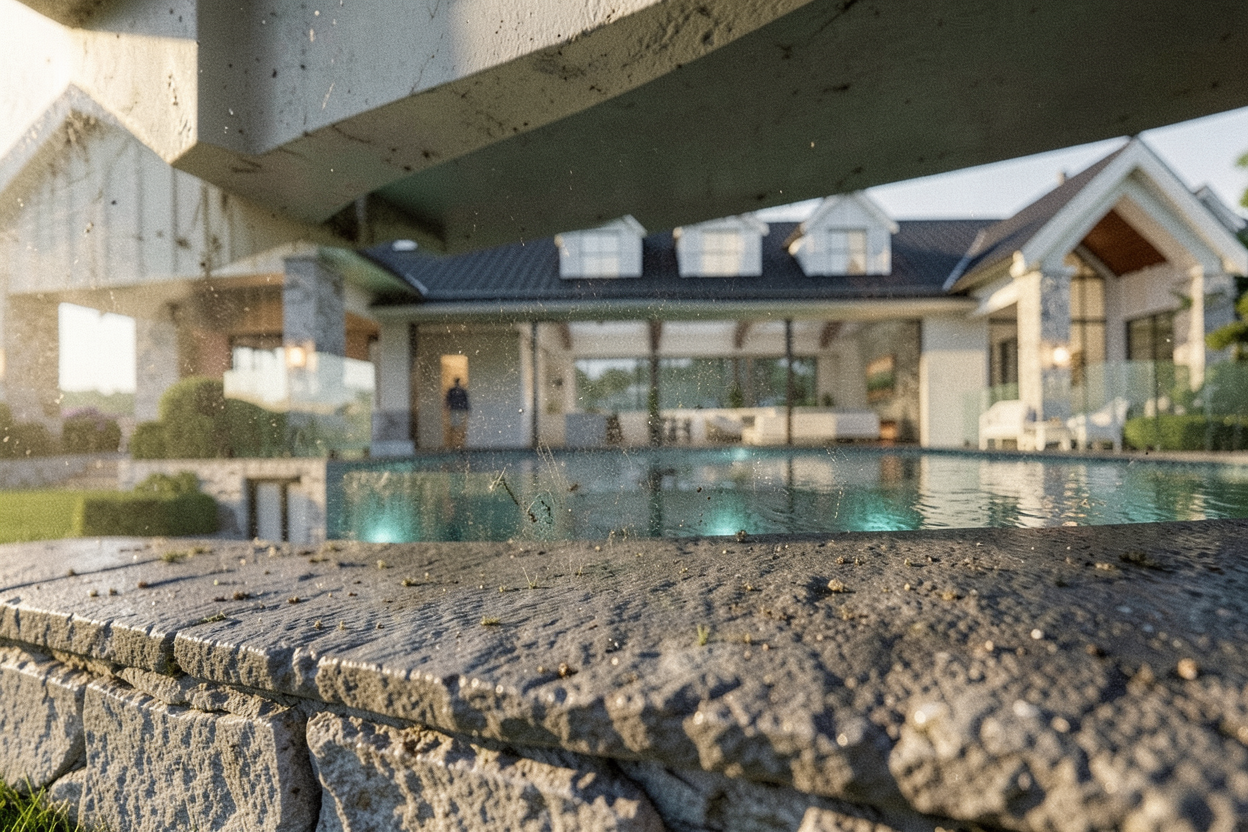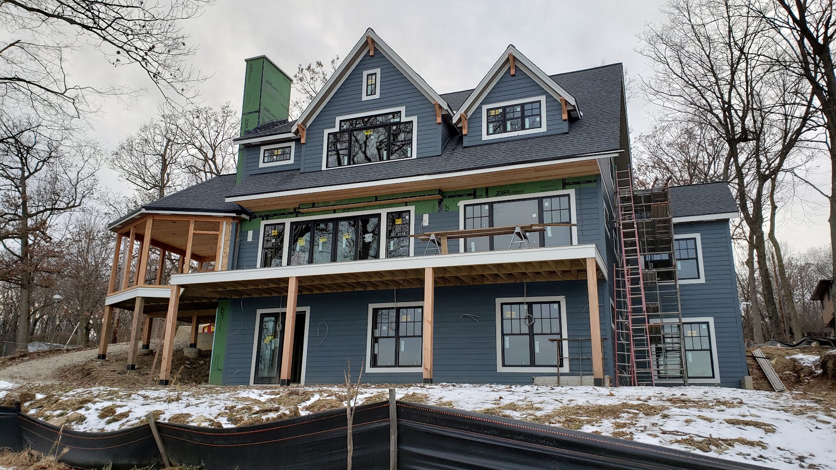 add stone to chin mney chase add screens to covered deck add landscaping remove scaffolding