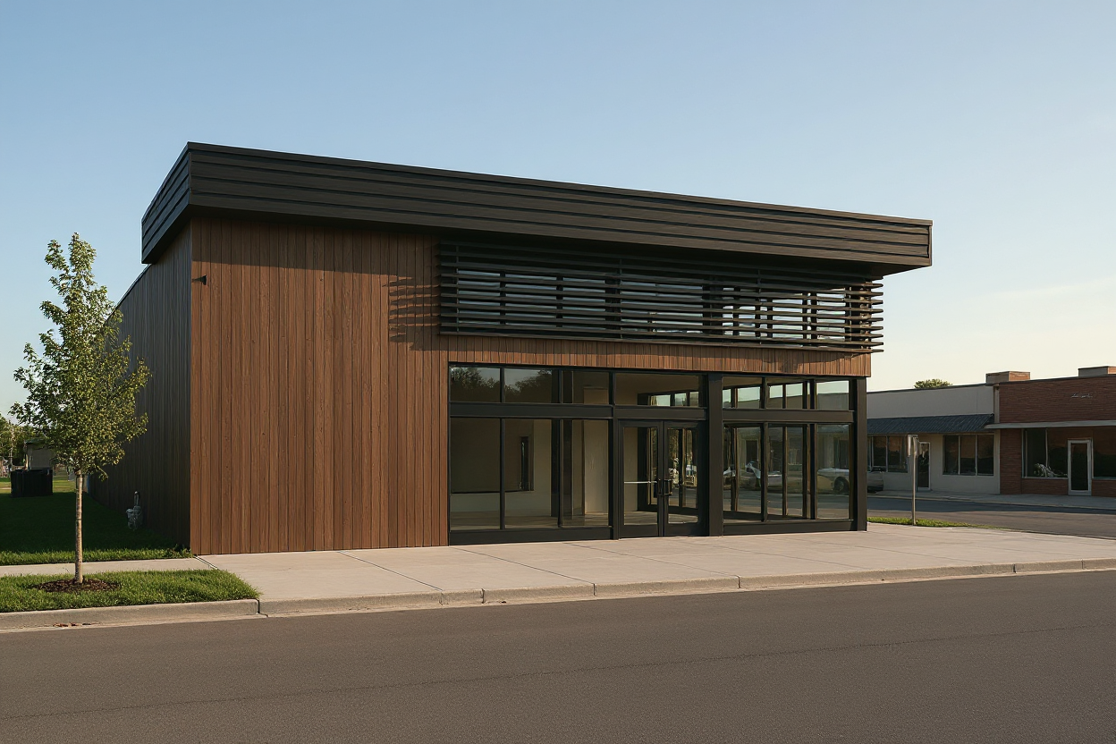 exterior shot a sunny day remove building and replace by parking lot dont show building remove building surrounding remove back building