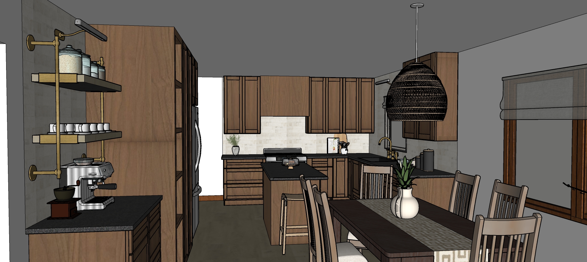 create interior visual with natural lighting but also accent lighting where fixtures are placed