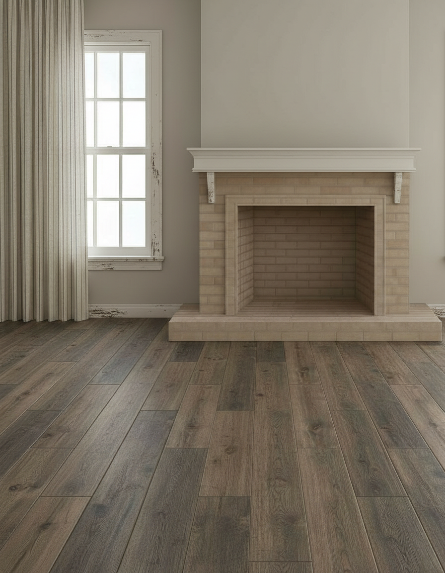 extend the length of the mantle make all brick rustic irregular and white washed with bagged cement per reference image