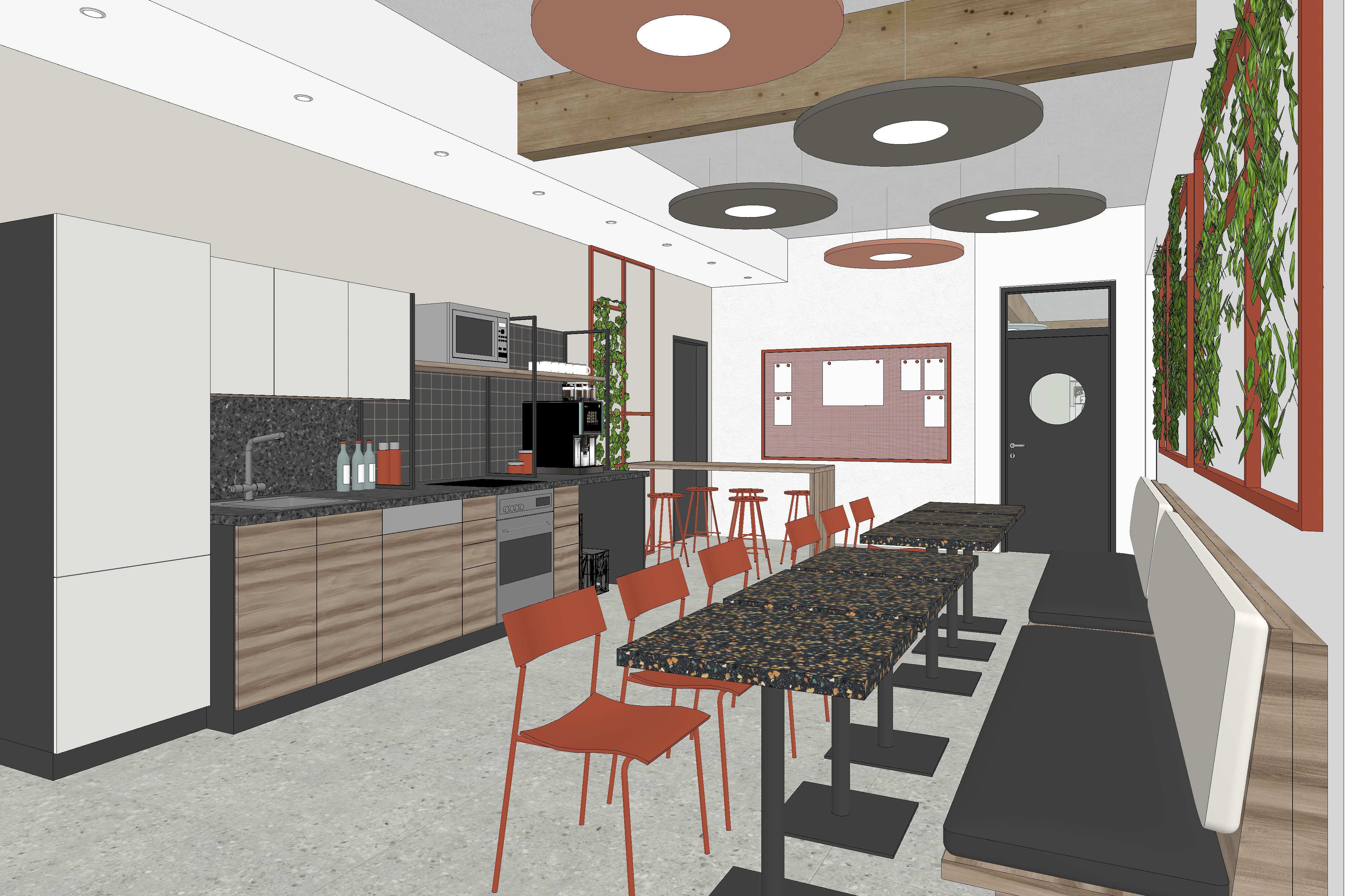 use the provided cad perspective strictly as the sole geometric and compositional reference preserve all elements exactly as given including proportions layout camera position field of view and object placement do not add remove reinterpret or redesign any architectural or interior elements no new objects furniture or light sources may be introduced under any circumstances all visible text within the image must be preserved exactly as shown do not alter reinterpret stylize translate or replace any text typography spelling layout and positioning must remain 100 identical to the original enhance the image exclusively through photorealistic rendering quality apply realistic materiality to all surfaces based on their implied function and construction maintaining the original design intent surfaces should exhibit subtle physical properties such as texture depth light absorption soft reflections and where appropriate controlled specular highlights or mirror effects avoid exaggerated or stylized materials aim for believable natural realism lighting introduce natural daylight entering the space in a plausible and context appropriate way the daylight should appear realistic and balanced without being limited to overcast conditions detect and utilize all light fixtures that are present in the original cad image these must visibly emit light and contribute to the overall illumination of the scene artificial lighting should produce realistic light falloff gentle highlights and nuanced shadow transitions do not add or invent any additional light sources beyond those already visible in the image the final image should read as a faithful photorealistic translation of the original cad perspective not as a reinterpretation