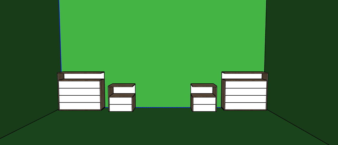 realistic bedroom wall with wood flooring and a bed between the bedside tables or in the middle