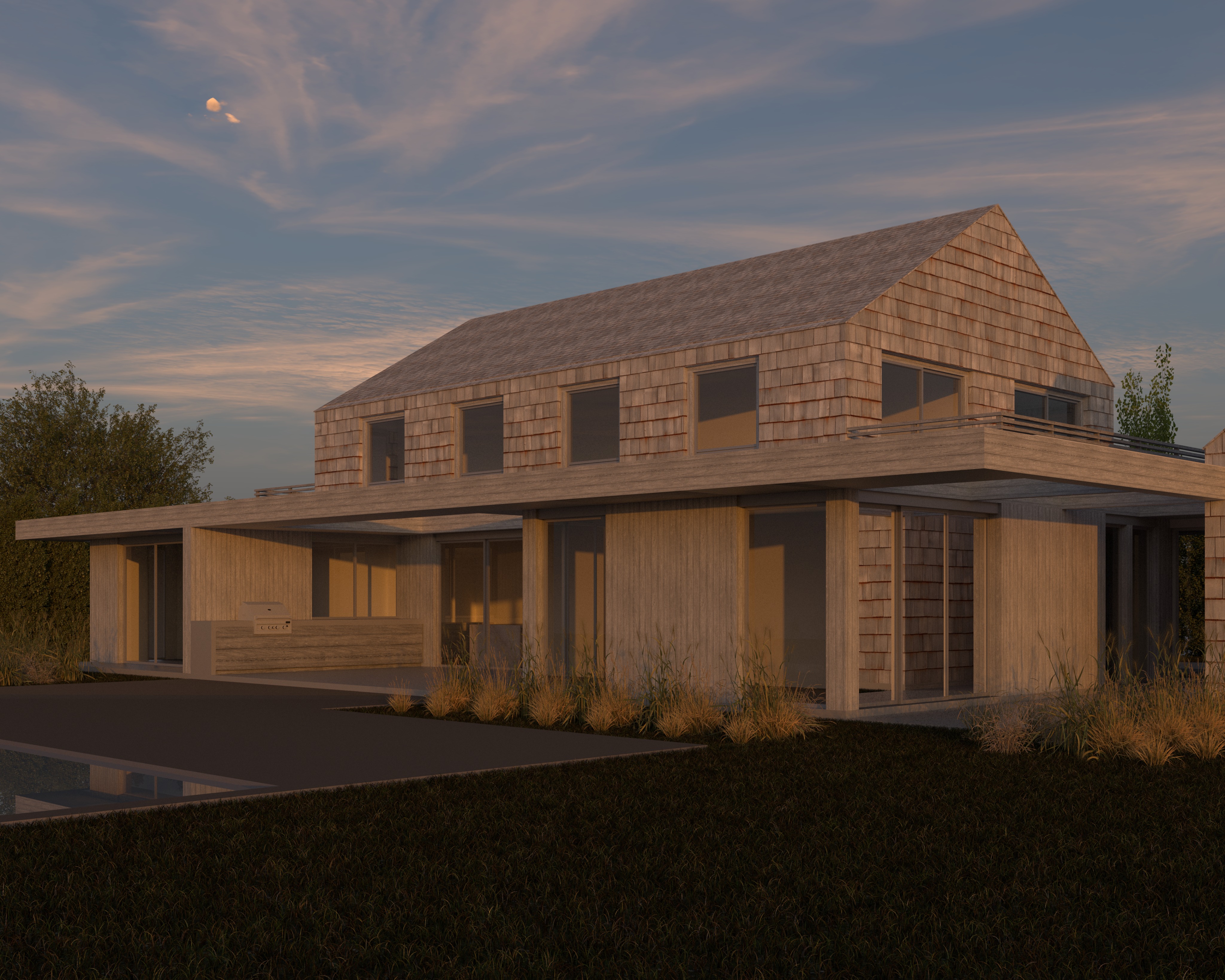 modernist exterior shot woven shingles no cornerboards architecture