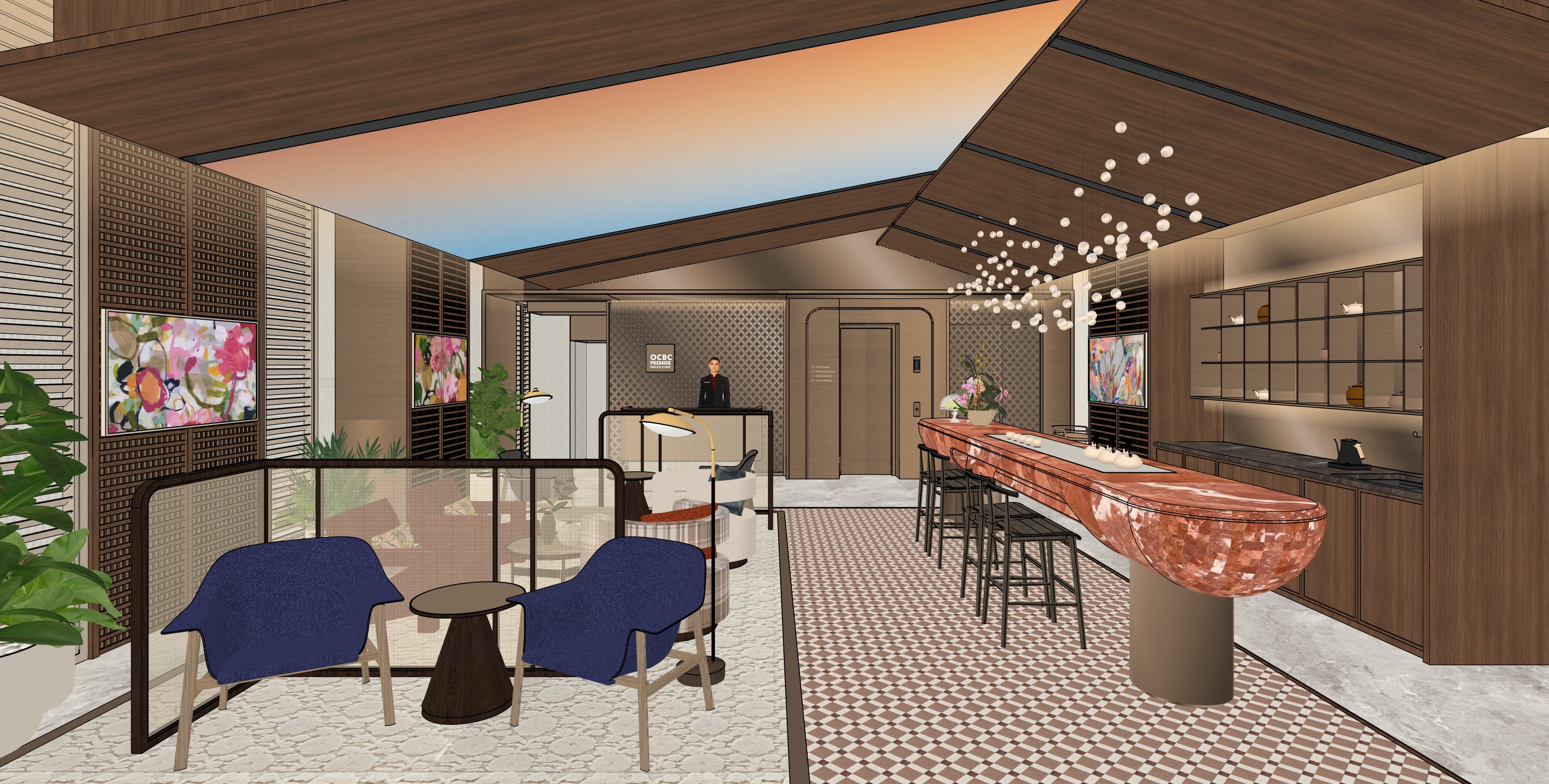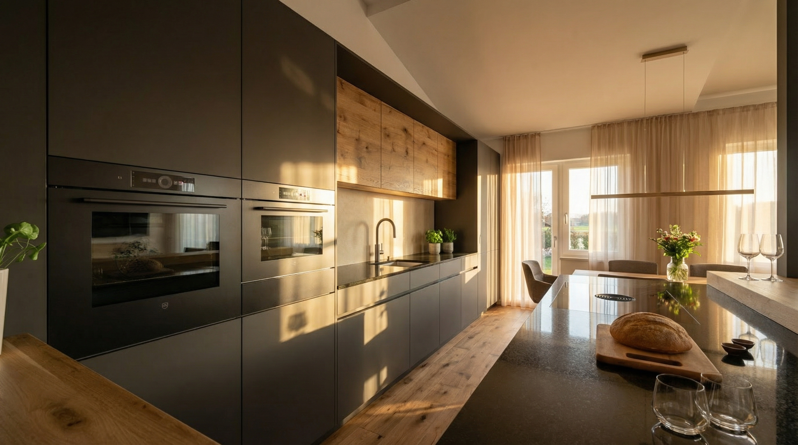 modern mid century lift in bead blast matte bronze metal very soft daylight behind shade from louvre window