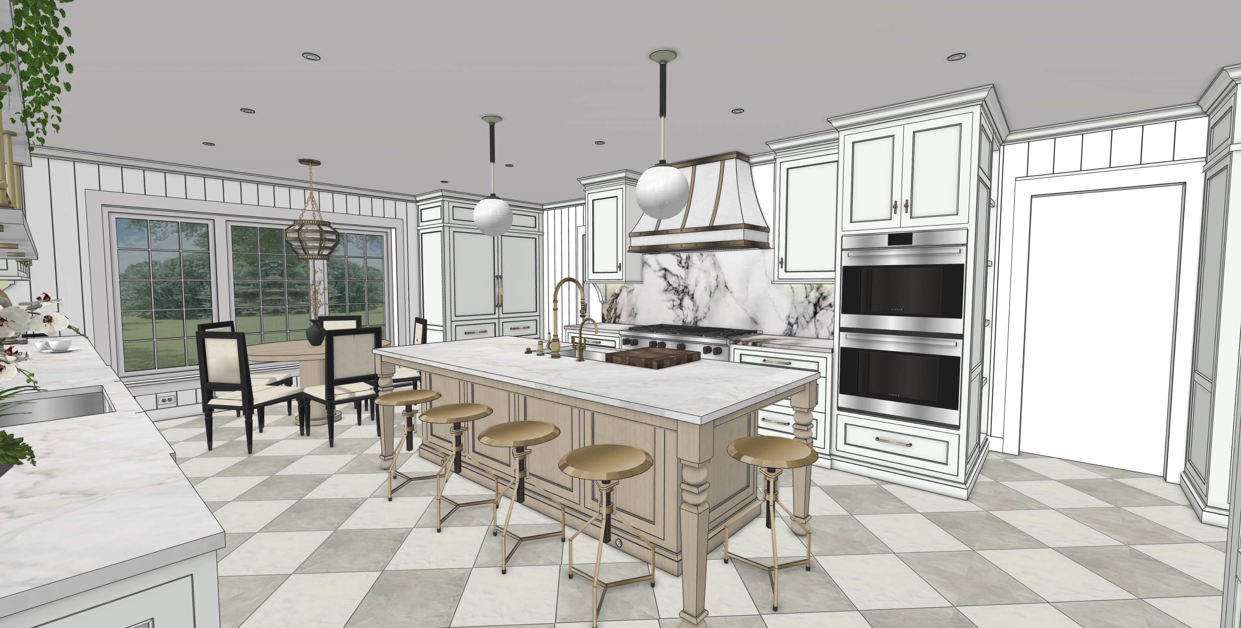 luxury kitchen interior add sunlight turn interior lights on at 300k