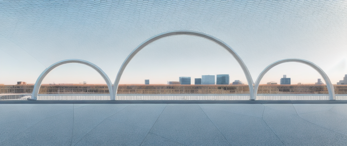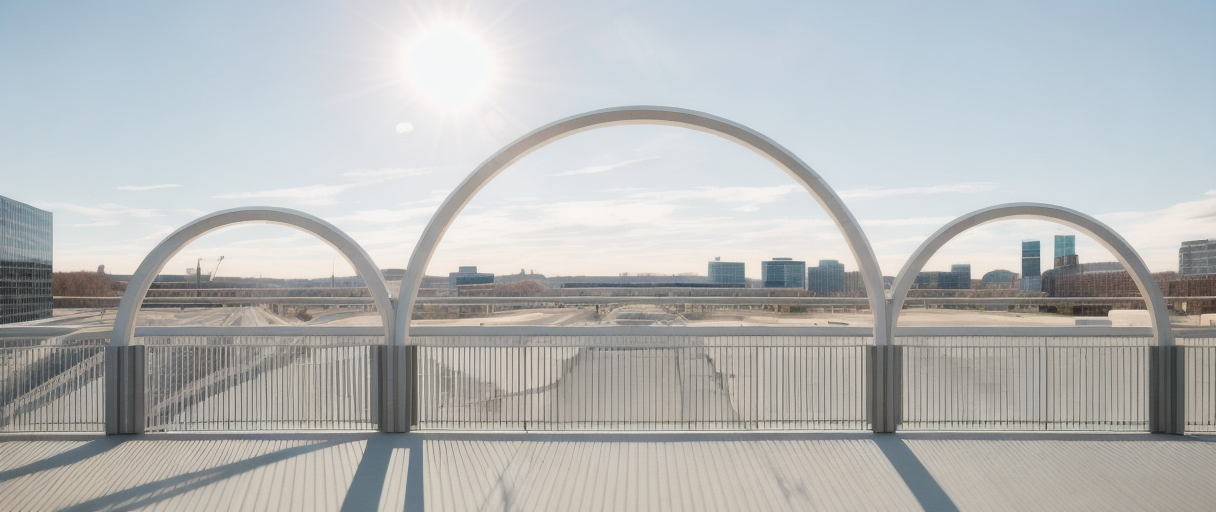 minimalism exterior shot big tied arch pedestrian bridge over a road make arch round steel middle arch bigger architecture