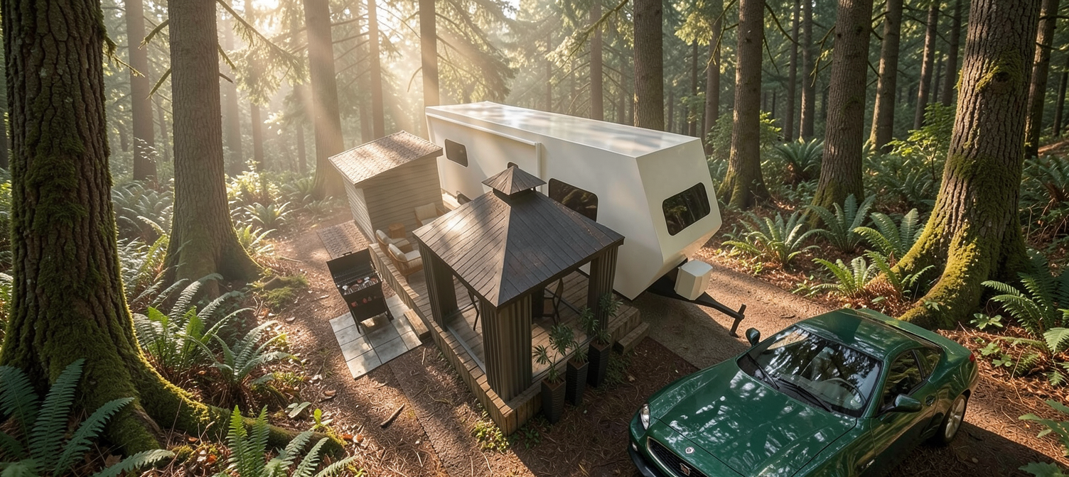 ultra realistic interior rendering of a warm contemporary primary bedroom feature wall with a centered fireplace and custom millwork symmetrical composition with floor to ceiling white oak cabinetry flanking a plaster fireplace surround cabinetry features vertical grain soft matte finish minimal brass hardware and integrated drawers below a large flat screen tv is mounted above the fireplace perfectly aligned fireplace is finished in a cast concrete in soft white finish with subtle tonal variation surrounding a firebox filled with charcoal fire spheres interior firebox lining has a slate grey split herringbone texture flames are natural gas low and ambient to the left a built in window bench with matching white oak cabinetry sits beneath a window with a textured roman shade in a warm neutral fabric to the right a flush wood door in a darker walnut tone adds contrast flooring is wide plank walnut natural hardwood in a medium warm tone with visible grain and satin finish transition detail important where the cabinetry platform meets the wood flooring include a refined tile inlay strip using cl zellige baguette tile gloss finish with 24k gold glaze dimensions 2 x 6 x 3 4 laid in a vertical pattern as a decorative threshold band tile should feel handcrafted with slight variation subtle reflectivity and imperfect edges catching light naturally lighting is soft indirect and architectural recessed ceiling lights with warm 2700k temperature gentle wall wash enhancing plaster texture subtle under cabinet shadowing for depth style should feel elevated editorial and timeless architectural digest aesthetic highly detailed materials realistic imperfections accurate light bounce soft shadows and natural color grading camera straight on elevation eye level 35 50mm lens rendering quality ultra realism ray traced lighting global illumination soft reflections micro texture detail
