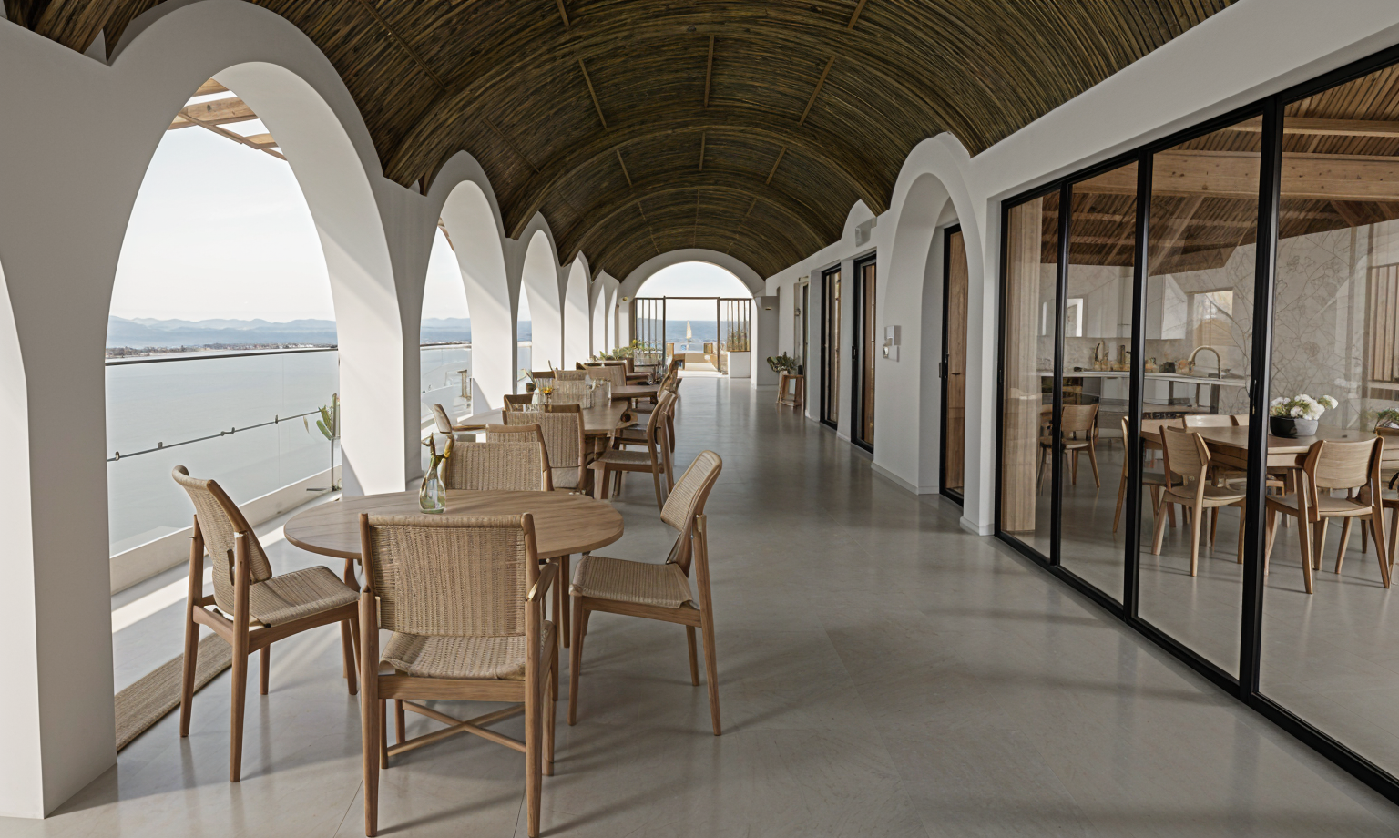 luxurious penthouse overlooking the washington monument high end conference room with a few business people interacting the space all lgihts to be turned one with cove lighting in the recessed tray ceiling sunset atmosphere with lighting flowing into bright space