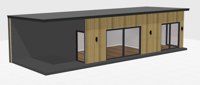 please insert an oak post measuring 100mm x 100mm on the front left hand elevation also please make the landscape all grass all the way around