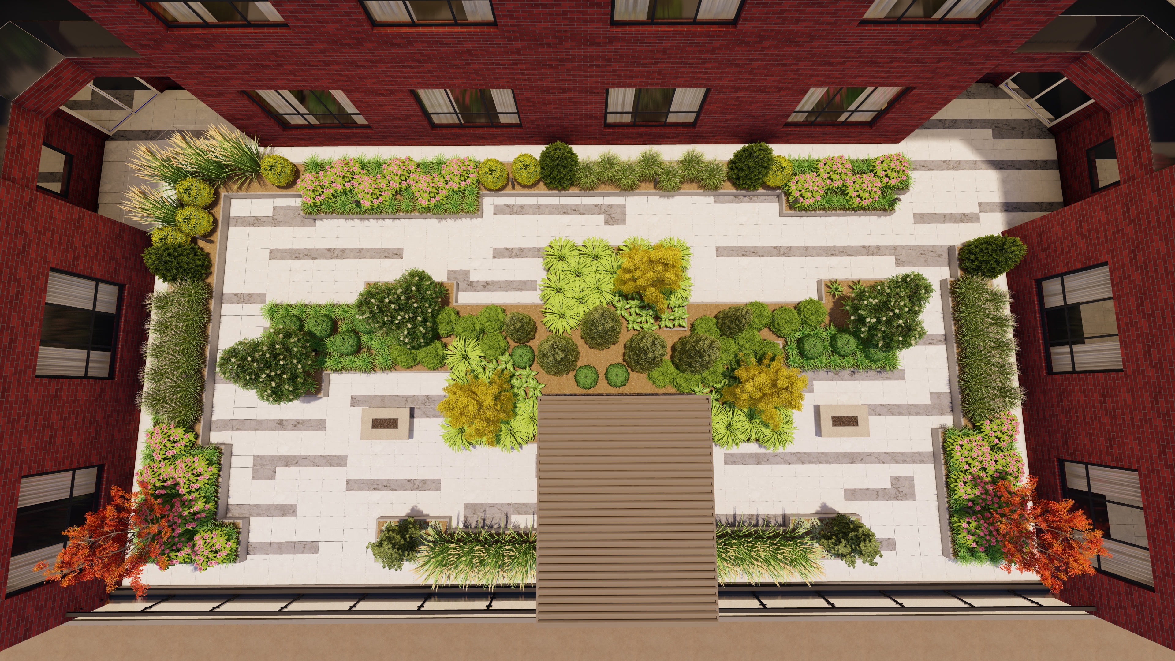 keep all materials the same but make them more photo realistic add apartment scenes in the windows and on balconies