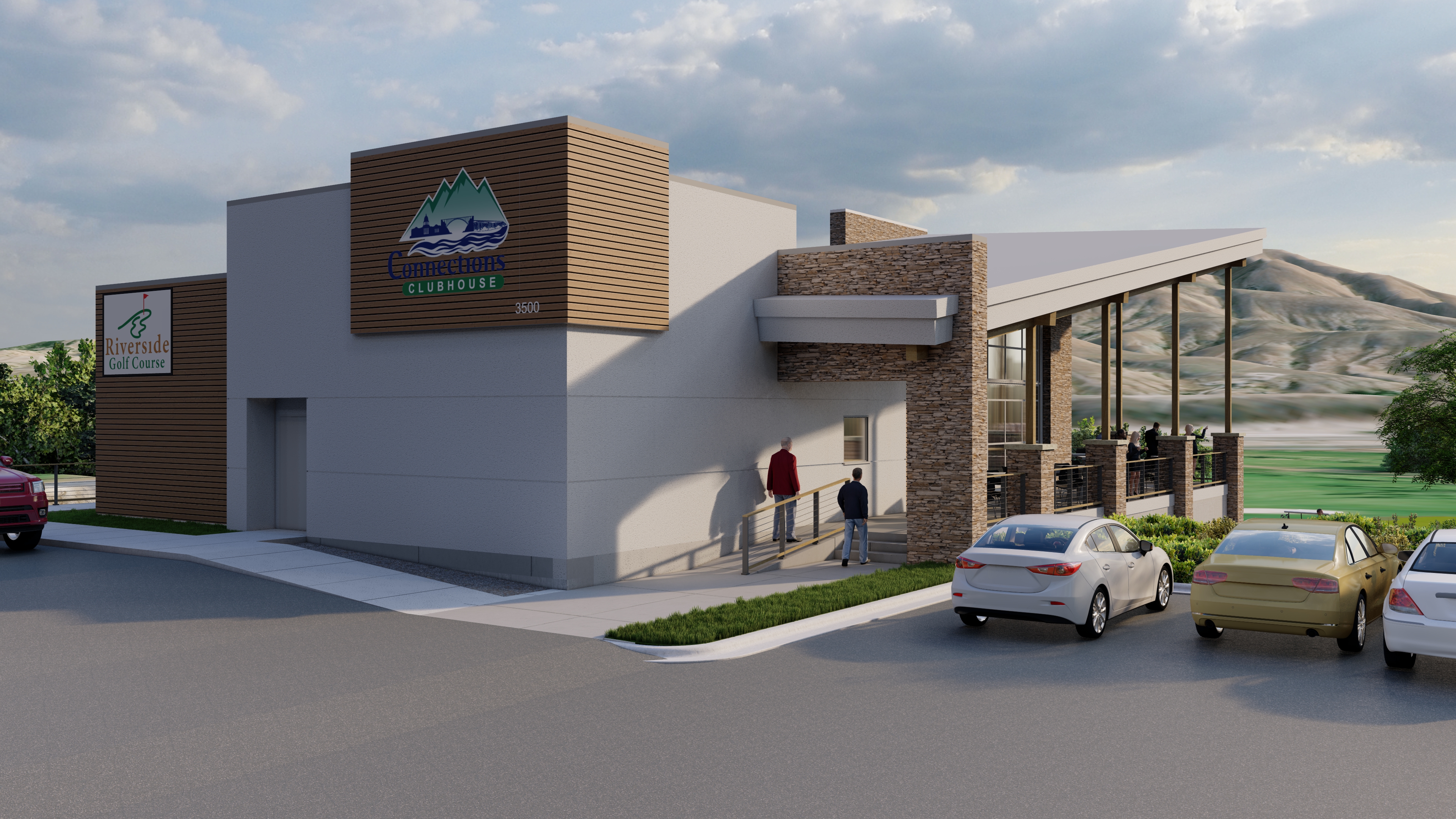 golf clubhouse with golf course in background