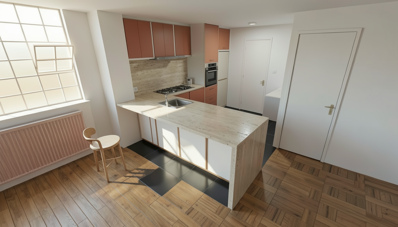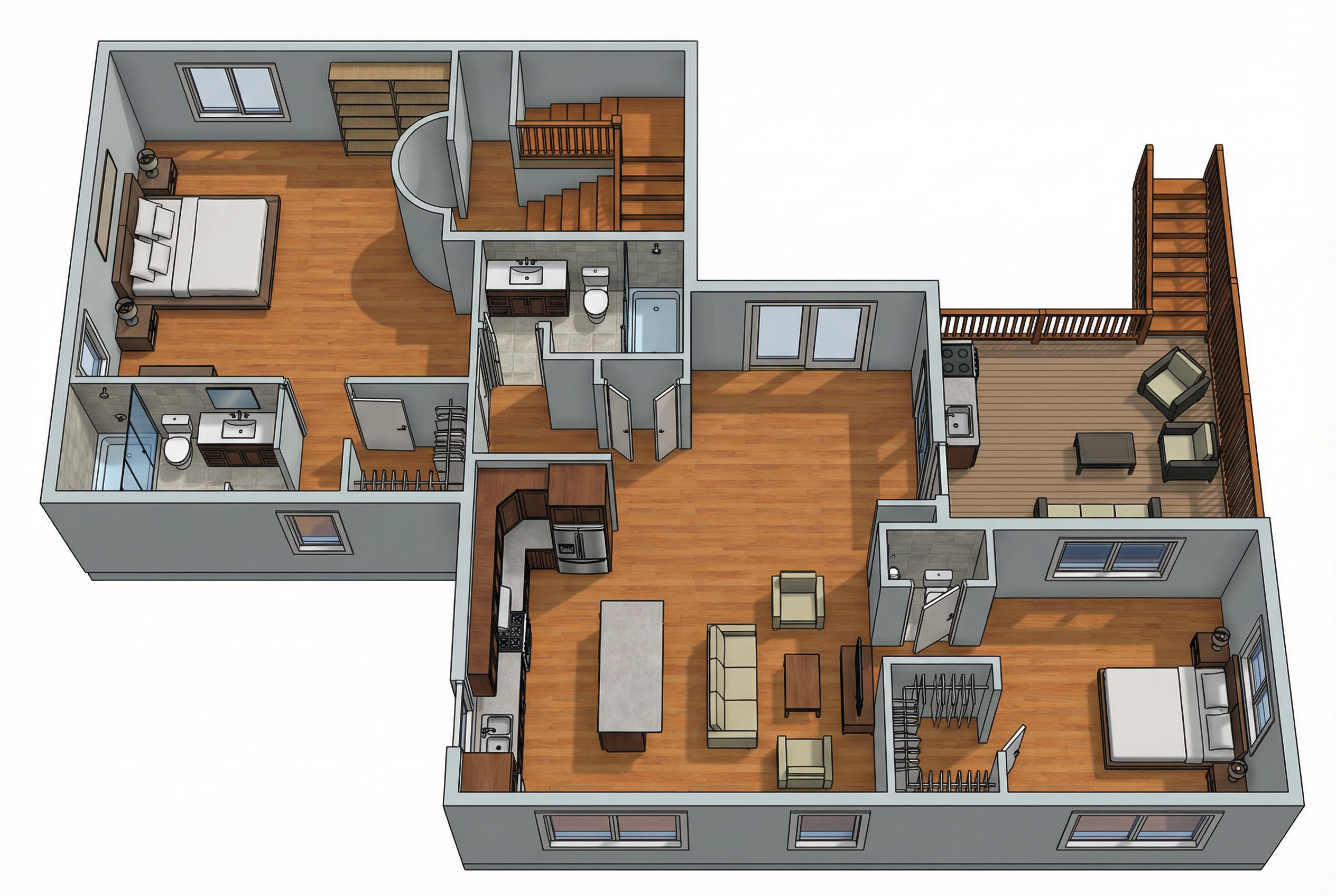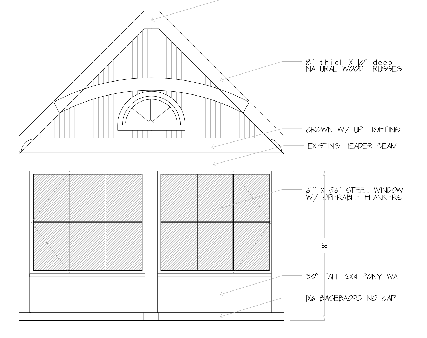 make rendering for an interior elevation wood cedar beams painted white interior everwhere else iron windows painted black