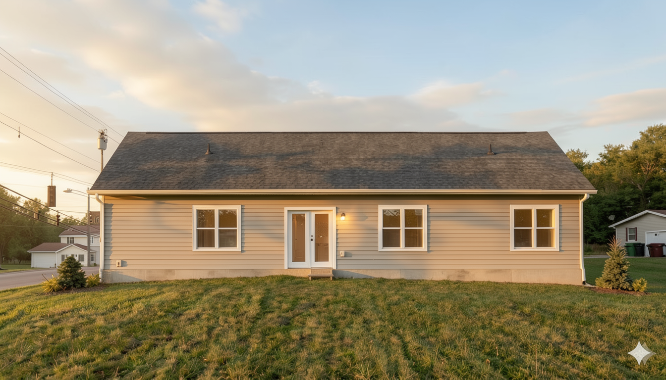 use the base image and keep the architecture exactly the same including massing roof shapes window sizes window locations and proportions do not redesign the house make only the following changes entry stone add a full height vertical stone element centered on the main entrance use light beige limestone with larger rectangular blocks the front door must be recessed into this stone element add a large stone arch directly over the front door at ground level forming a covered entry porch the stone element must extend from ground to roofline do not add stone anywhere else on the house roof materials very important the entire main roof must be dark charcoal architectural shingles only no metal roofing on any main roof surfaces add black standing seam metal roofs only in these two locations a small metal canopy roof directly above the garage doors a small metal canopy roof directly above the entry porch these metal roofs are small accent roofs not main roofs siding use vertical natural wood siding siding boards should be narrow approximately 6 inches wide color should be warm natural cedar tone medium brown grey not too brown and not too grey wood should look natural and slightly weathered windows keep all windows exactly the same keep the tall double height living room windows exactly as they are do not show interior glass should be darker and slightly reflective driveway driveway must be uniform light grey cobblestone stones should be small and consistent in size no large slabs no patchy texture no dark spots garage garage exterior should be wood siding only no stone at the base of the garage style high end mont tremblant luxury alpine home timeless elegant natural materials most important keep the original design exactly the same and only modify materials add the stone entry arch and add the small metal canopy roofs over the garage doors and entry do not redesign anything