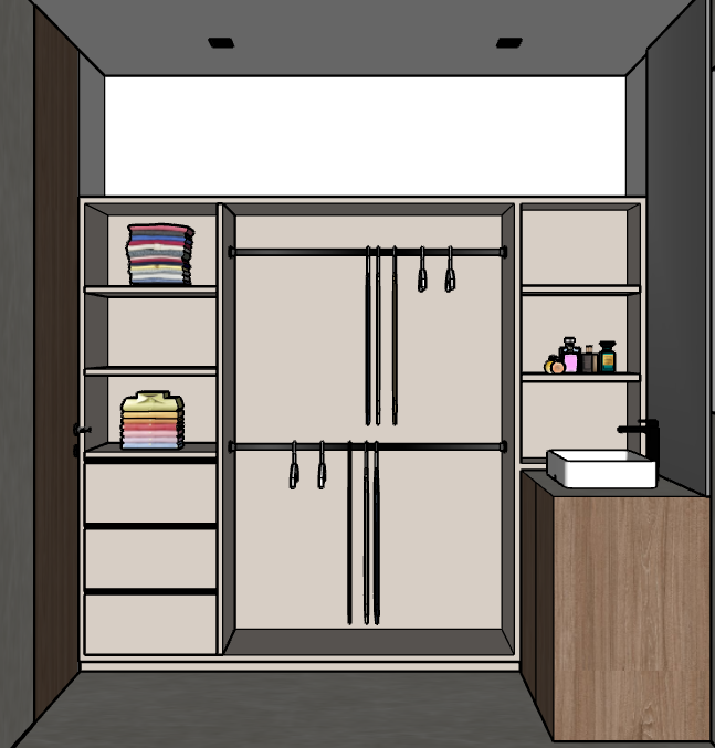 all walls are white the dresser is a plain beige tone