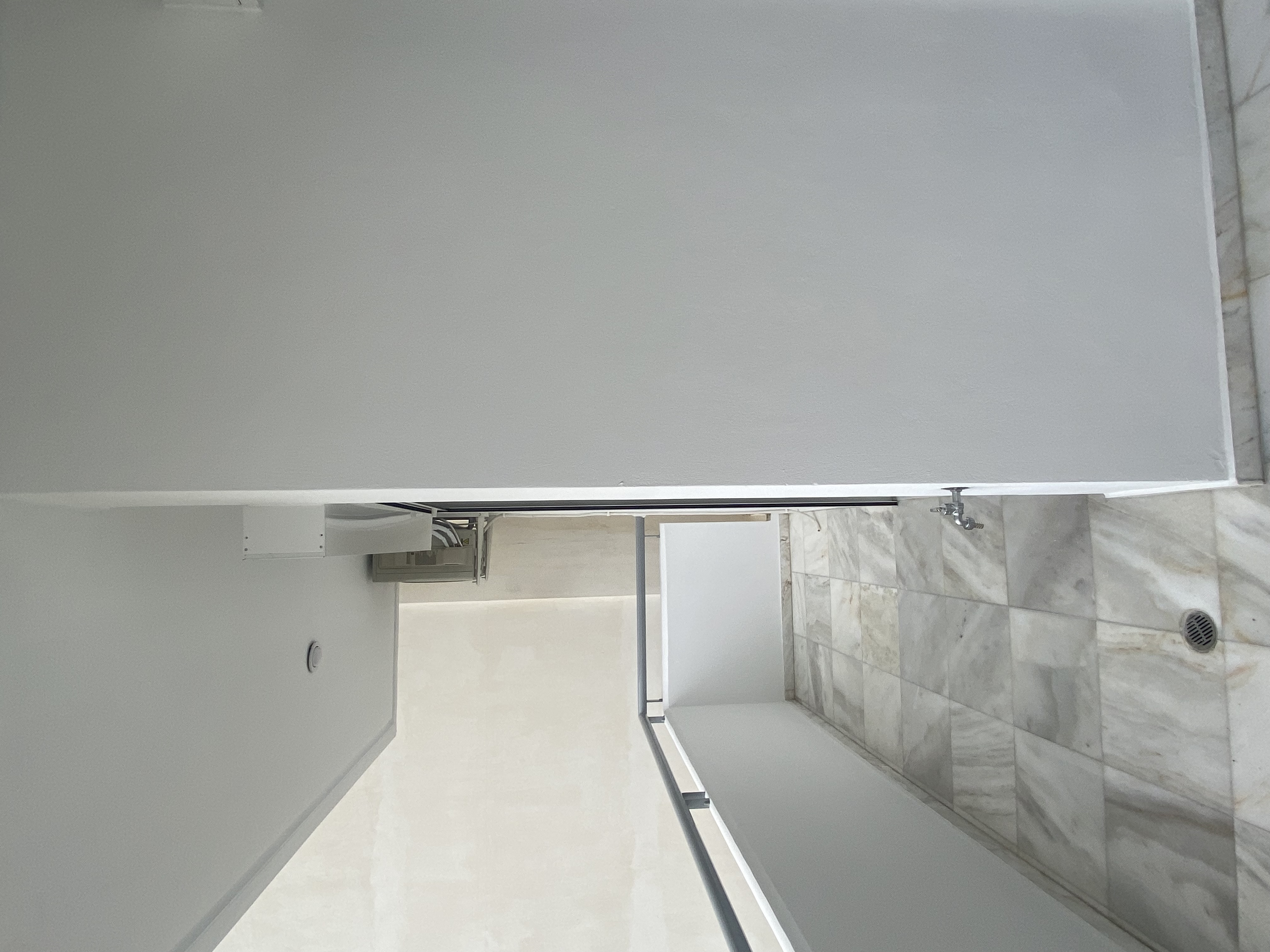 enhance this image in a professional real estate photography style while strictly preserving the original lighting fixtures and scene do not modify or reinterpret any light sources keep the exact lighting direction intensity and color temperature as in the original image improve overall image quality by increasing sharpness clarity and resolution remove pixelation and compression artifacts while maintaining natural textures apply subtle noise reduction and detail enhancement without creating an artificial or overprocessed look correct lens distortion and straighten vertical lines balance exposure gently without flattening contrast keep materials realistic avoid overly smooth or cgi like surfaces enhance the floor so it appears clean fresh and well maintained remove any dirt stains or dullness and slightly improve clarity and reflections do not change the tile pattern color texture or layout in any way only improve its cleanliness and overall appearance do not change colors objects layout or lighting setup in any way only enhance the existing photograph to not make it look ai generated