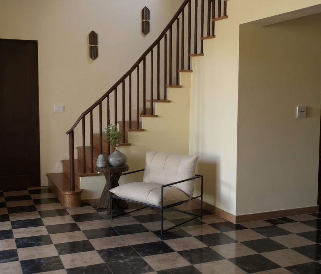 this is a boundary wall improve it s appearance by increasing textire and lightening up the wall sconces do not ake the scene dark