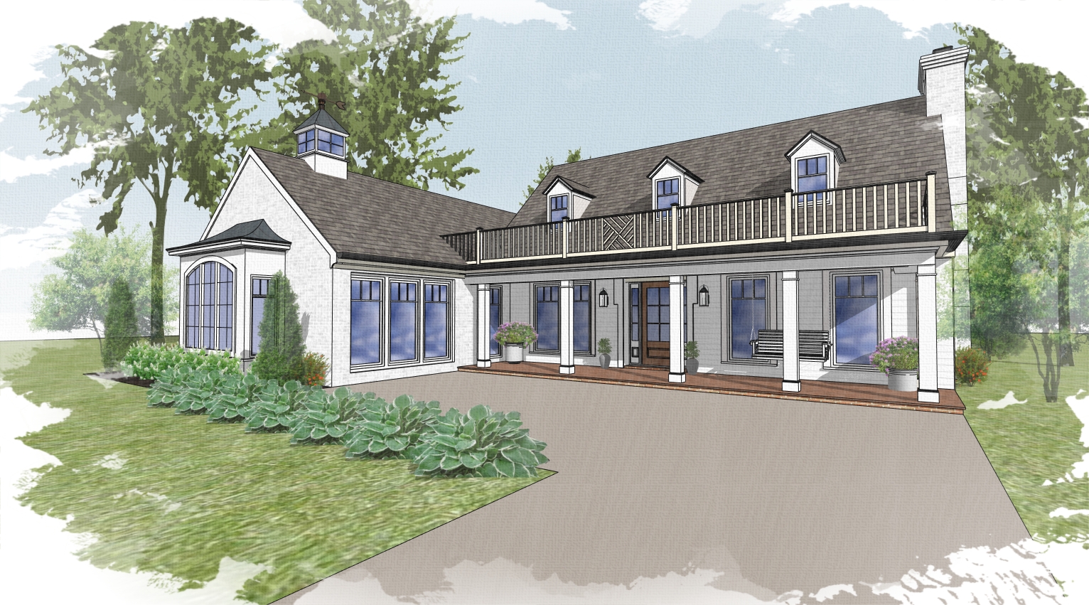 render to make look realistic soft lighting white brick house with white trim and overall cottage aesthetic