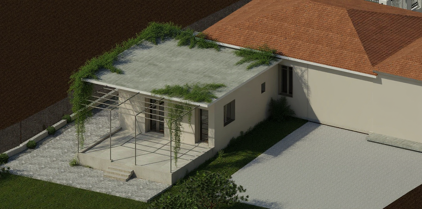 make it more realistic and put climping plants on the metal support structure in fron to the building