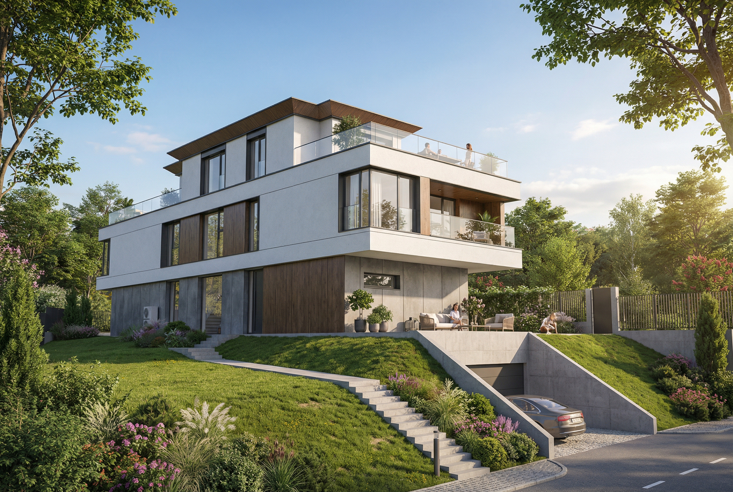 add hedges around the garage wall the hole ground floor is with that grey tile keep everything else the same