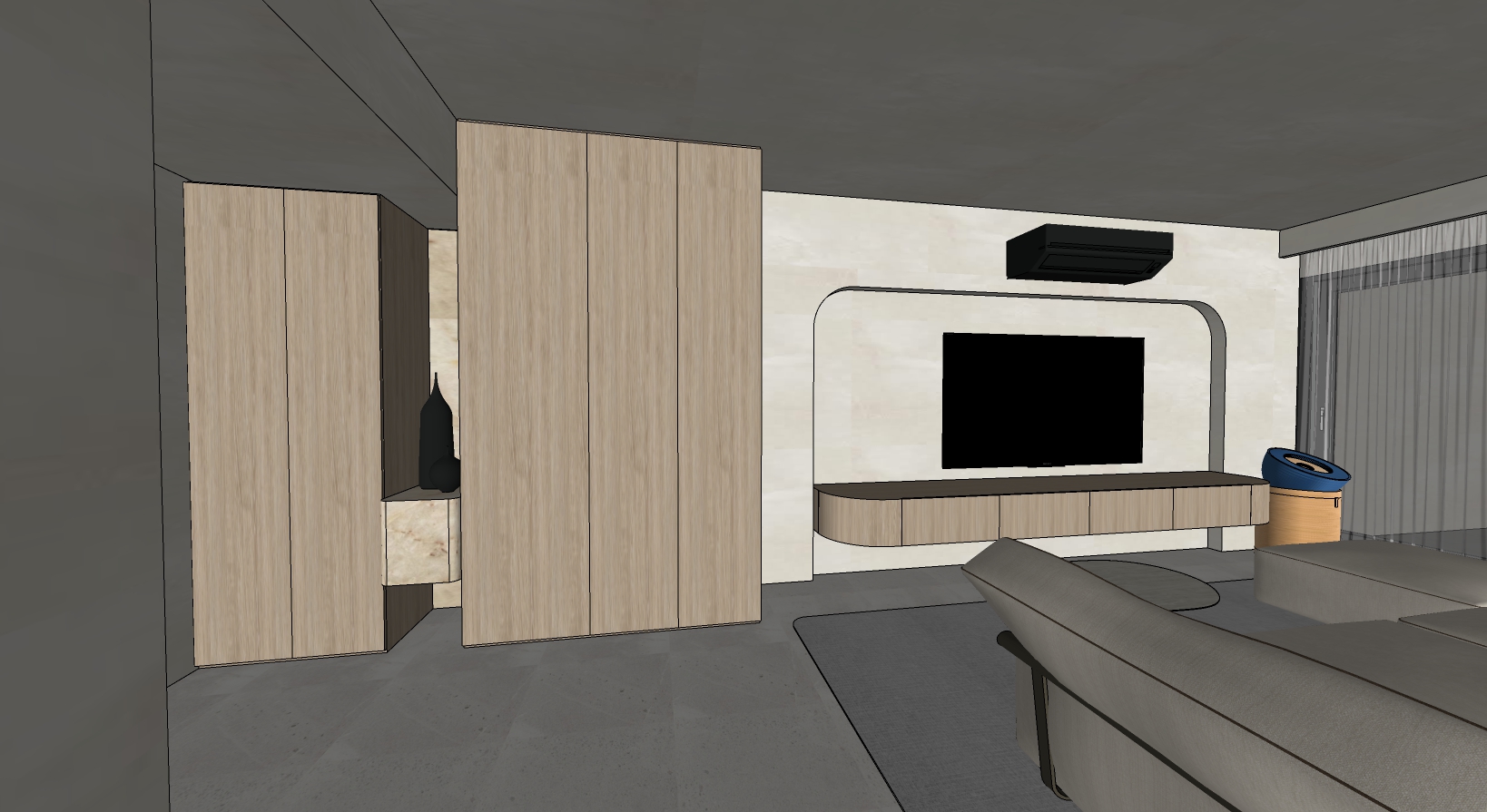 render this image in a realistic style maintaining the exact same composition furnishings and design without adding or removing elements