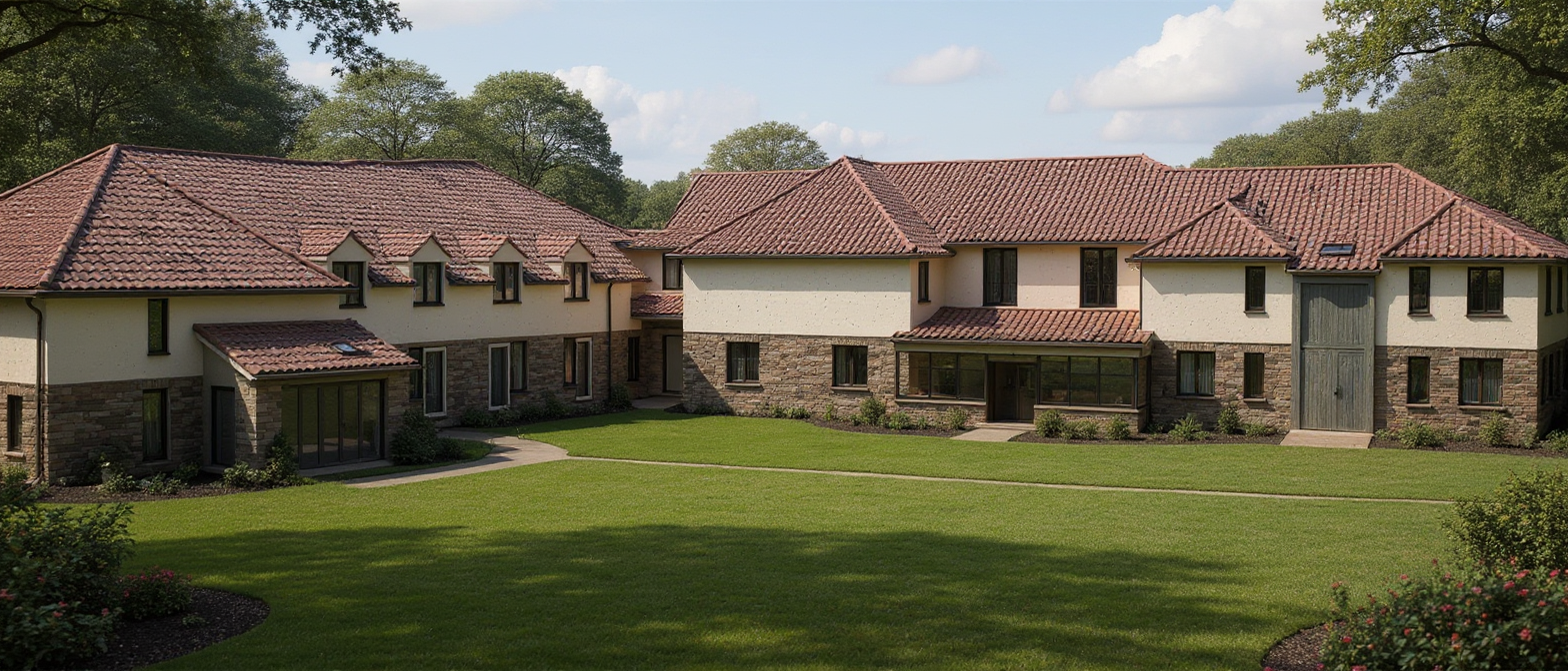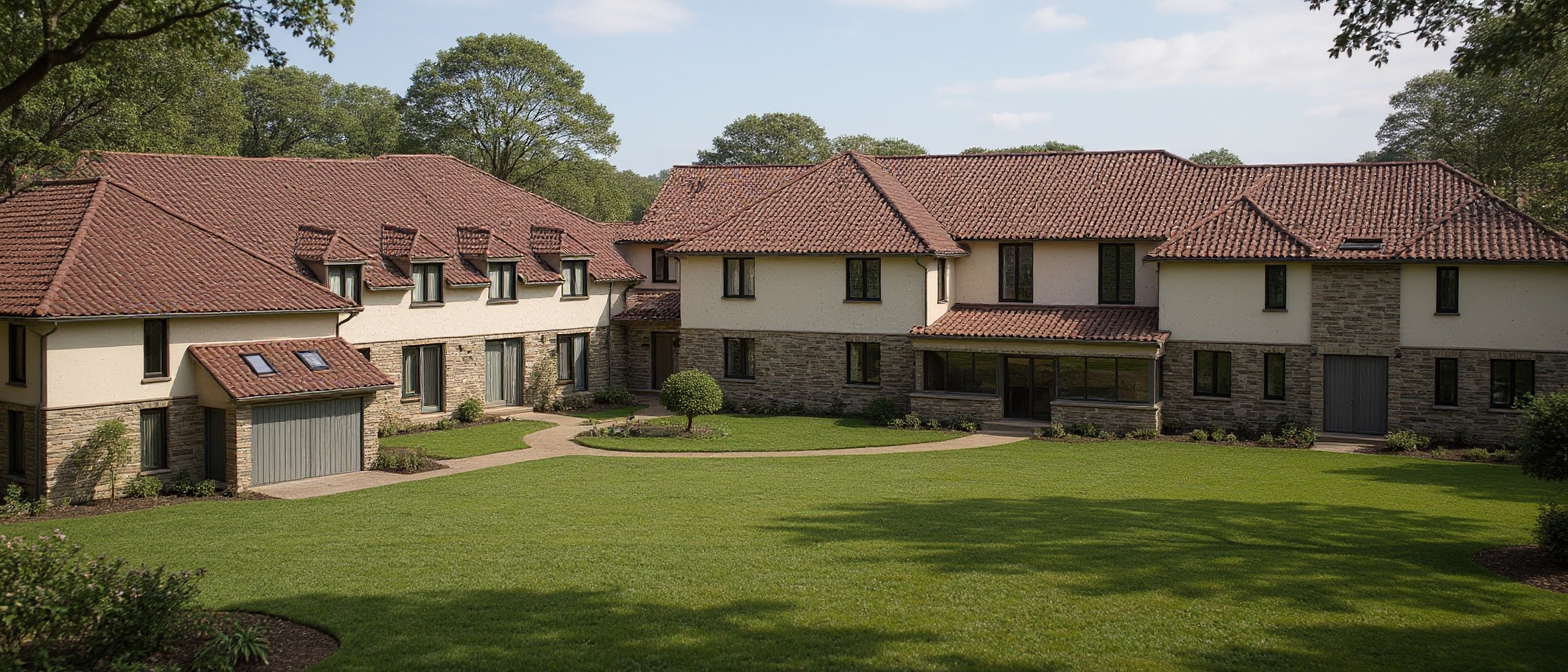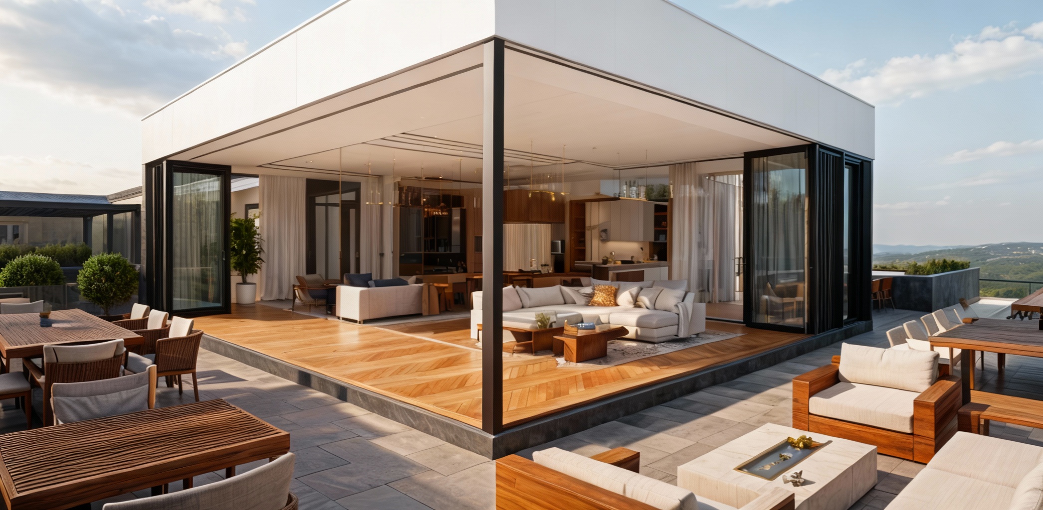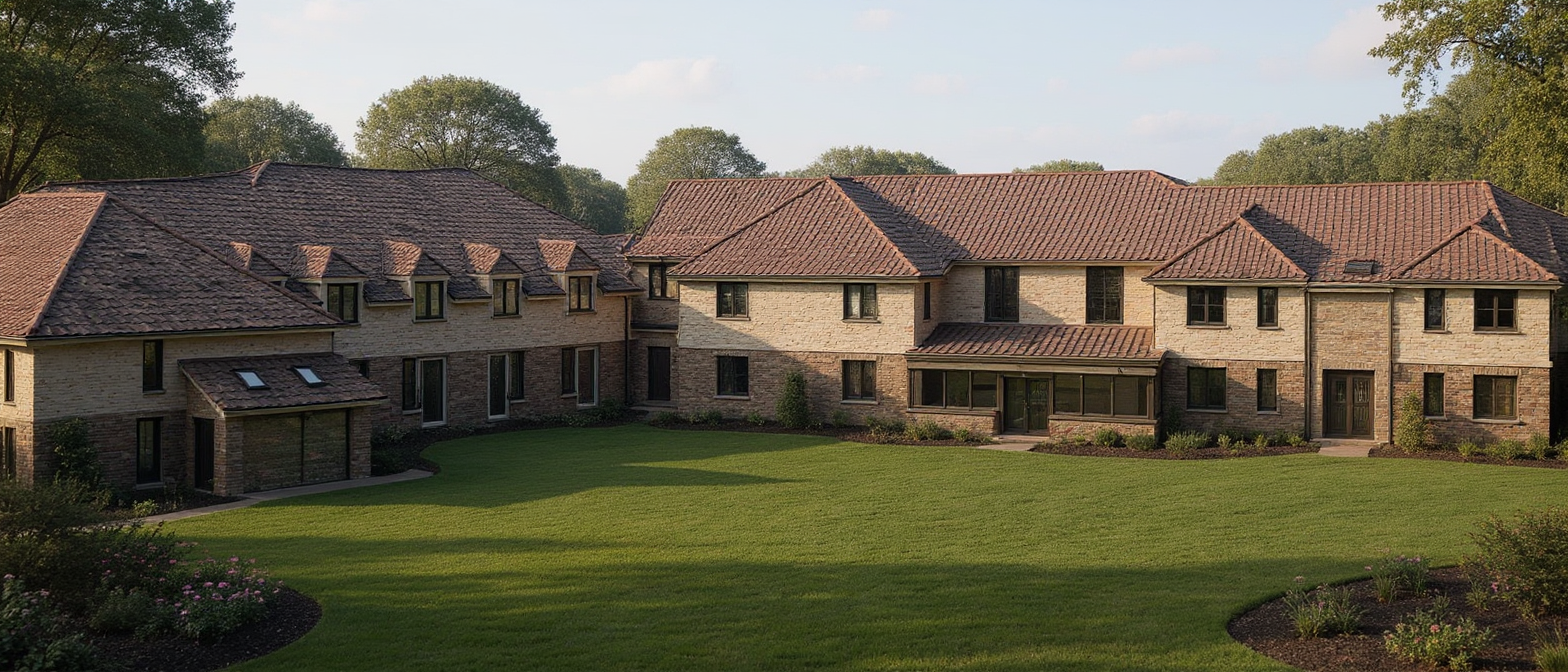 modernist exterior shot a luxury mixed use shopping mall located in iraq featuring elegant contemporary architecture the fa ade is clad in high end natural stone tiles with bronze accents and large glass storefronts creating an upscale middle eastern aesthetic surround the building with a realistic road and driveway layout only no parking lots no nearby buildings clear blue sky soft daylight photorealistic rendering focused on the mall and its immediate road context architecture