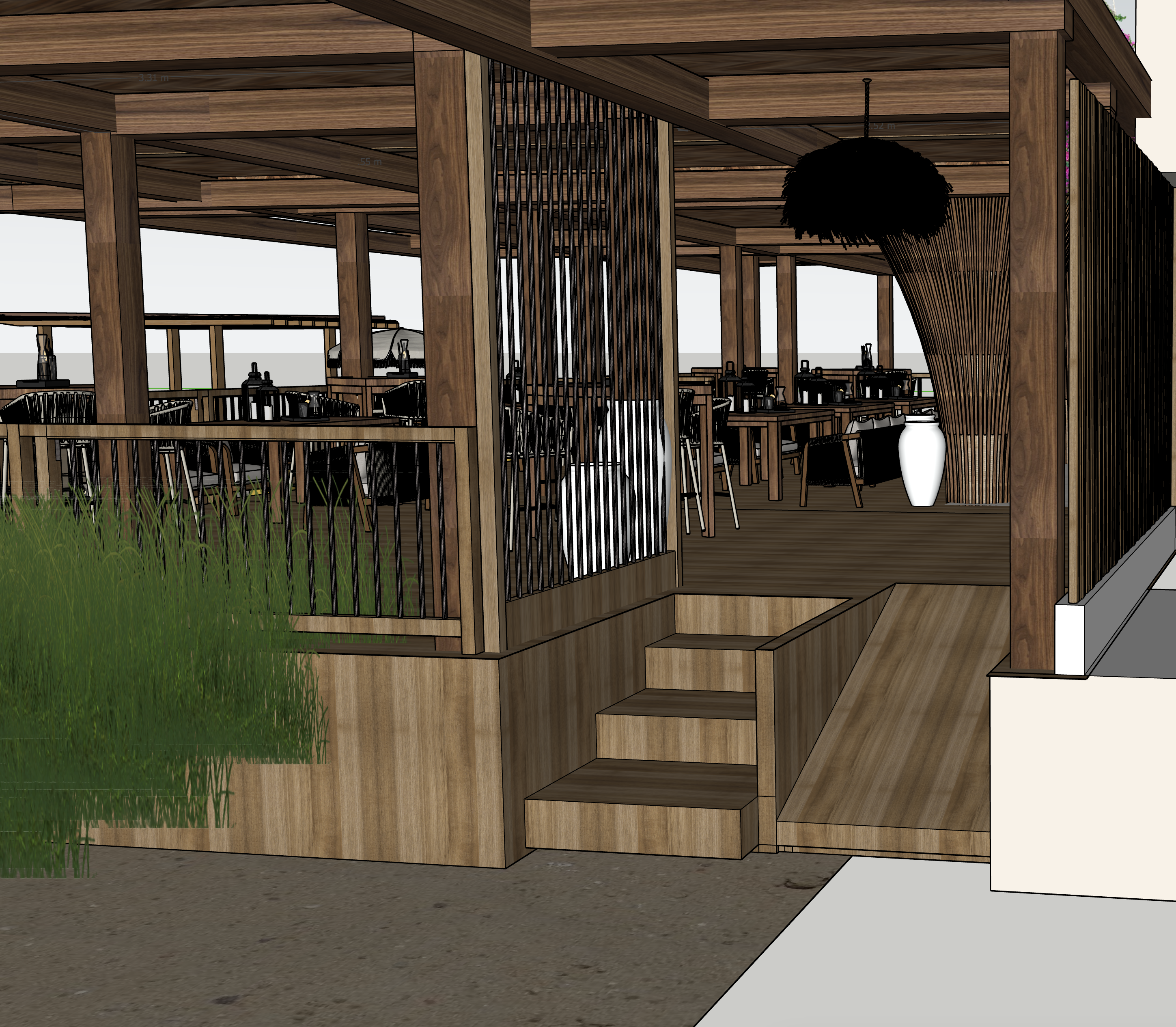 mediterranean revival interior shot a view of an organic wooden beach club restaurant with indirect lighting tea wood and rope for handrail and decorative objects stair cases with indirect lighting architecture