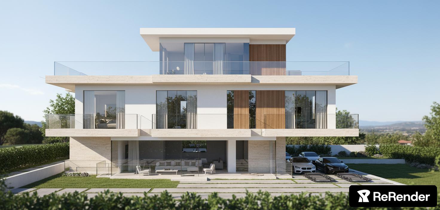 contemporary exterior shot make the villa look very modern and contemporary with a sleek exterior with louver designs on the facade architecture