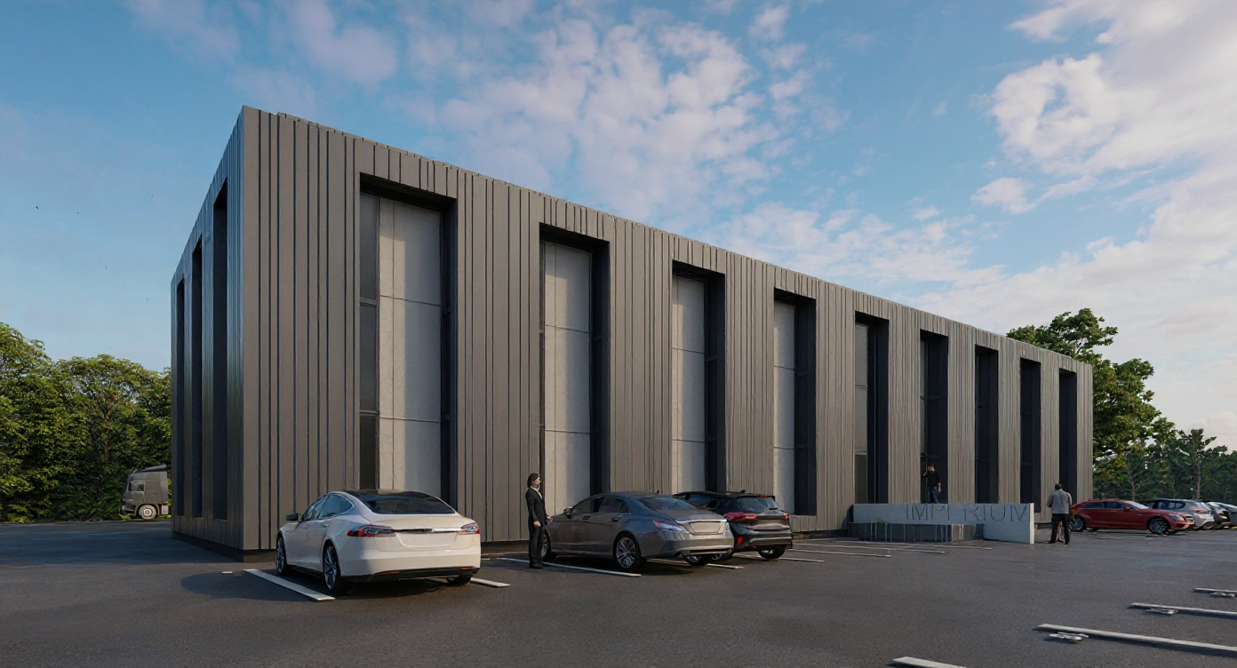 render an elegant barbershop interior with a modern neo brutalism style sleek design gray textured in the deep wall the letters in the to that wall are muscas and down are barberie italiani all are in blue color steel metal with light in the back dark wood flooring 3 white leather barber chairs with chrome accents countertop and counterwork with wood finish display a vibrant green plant on the countertop for a touch of nature use gentle ambient lighting to create a calming atmosphere the logo muscas on the wall is bold and modern featuring with white leds in the back