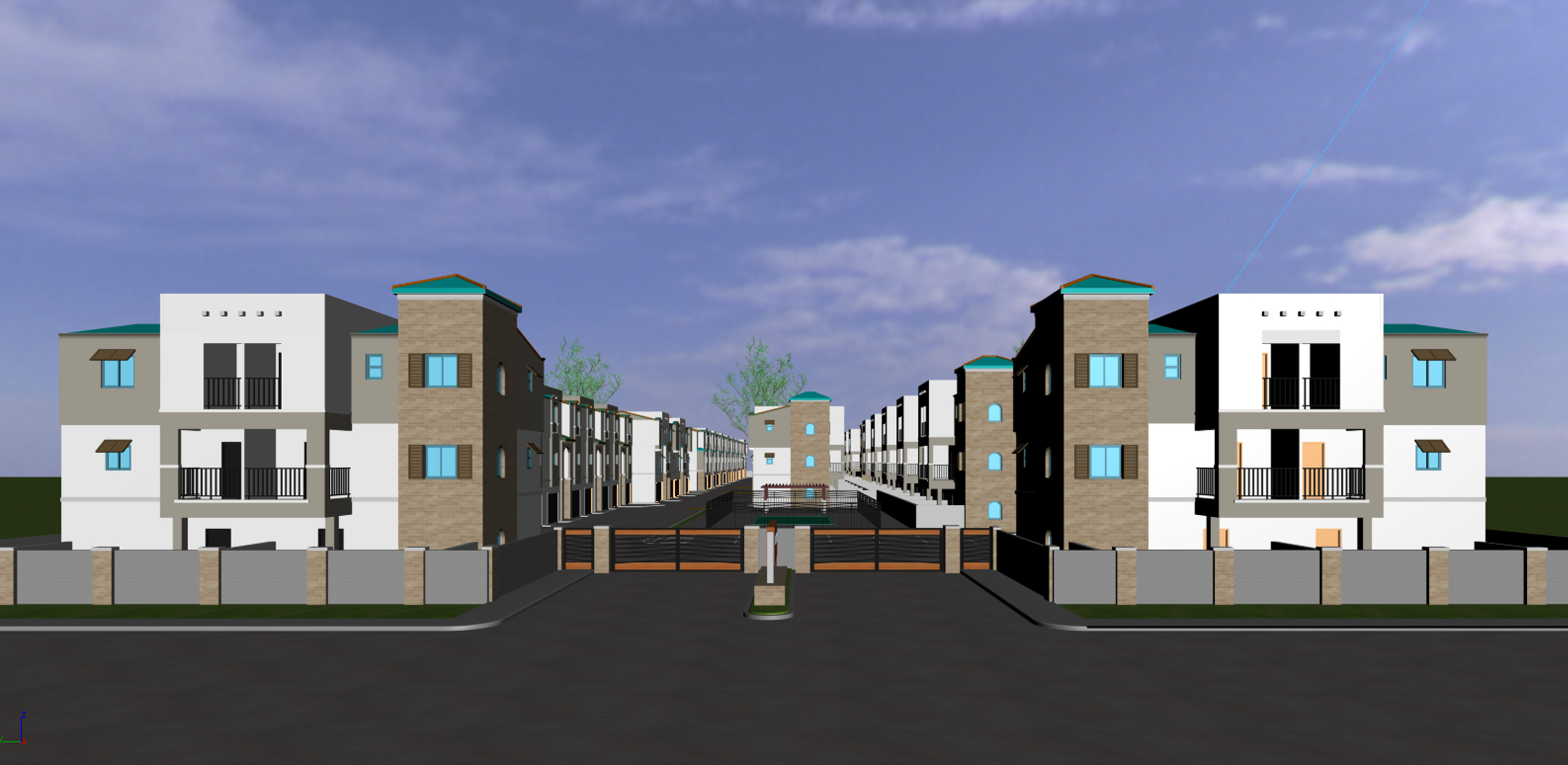 render a photorealistic 3d perspective of this multi family development in apache junction arizona with the exact coordinates 33 24 47 2 n 111 34 46 7 w the development is positioned into the existing texture of the surrounding apache junction community between safeway 3185 w apache trail apache junction az 85120 united states and ajrv and boat storage the site is in the west of apache south meridian road in the distant background the iconic mountain formation subtly peeks out just beyond the development the perspective is maintained precisely set against the high resolution do not change the camera view and massing maintained the design of the buildings keep model geometry the same including windows doors roof walls balconies architectural element garage door pavement and driveway reference to the current material style are concrete mission s tile eagle roofing capistrano piedmont blend roof stucco wall color sw 7566 westhighland white for main floor and second floor while sw 7634 pediment for accent walls balconies and parapet walls white pvc window frame black metal door 6 x 6 wood block concrete apron and pavement black metal balcony grills concrete masonry block fence with accent apache stone denton park avenue acme brick of the protruded fence columns enhance the materials detailed textures in the stucco wall and glass reflections and a vibrant clear sky with light atmospheric depth render in hyper realistic architectural visualization quality 8k resolution add subtle reflections in the glass and realistic textures on the brick stucco walls roof and paving include soft shadows cast by the surrounding trees and buildings the architecture must convey understated elegance and timeless sophistication while asserting a unique and memorable identity the fa ade should visibly express the luxury of the buildings through refined detailing rich textures and carefully chosen materials such as local stone smooth concrete treated wood and tinted glass emphasize a strong connection to the landscape in the front of the property makes a lush vegetation that looks native to apache junction arizona cactus date palm willow acacia hop bush blue agave murphy s agave aloe vera and red bird of paradise add motion vehicles passing a swimming pool and a wood pergola will greet you as you enter the development the setting of the pool features a landscaped lawn with a mix of trimmed green grass and mixed vegetation of date palm flame bougainvillea mexican honeysuckle and new gold lantana