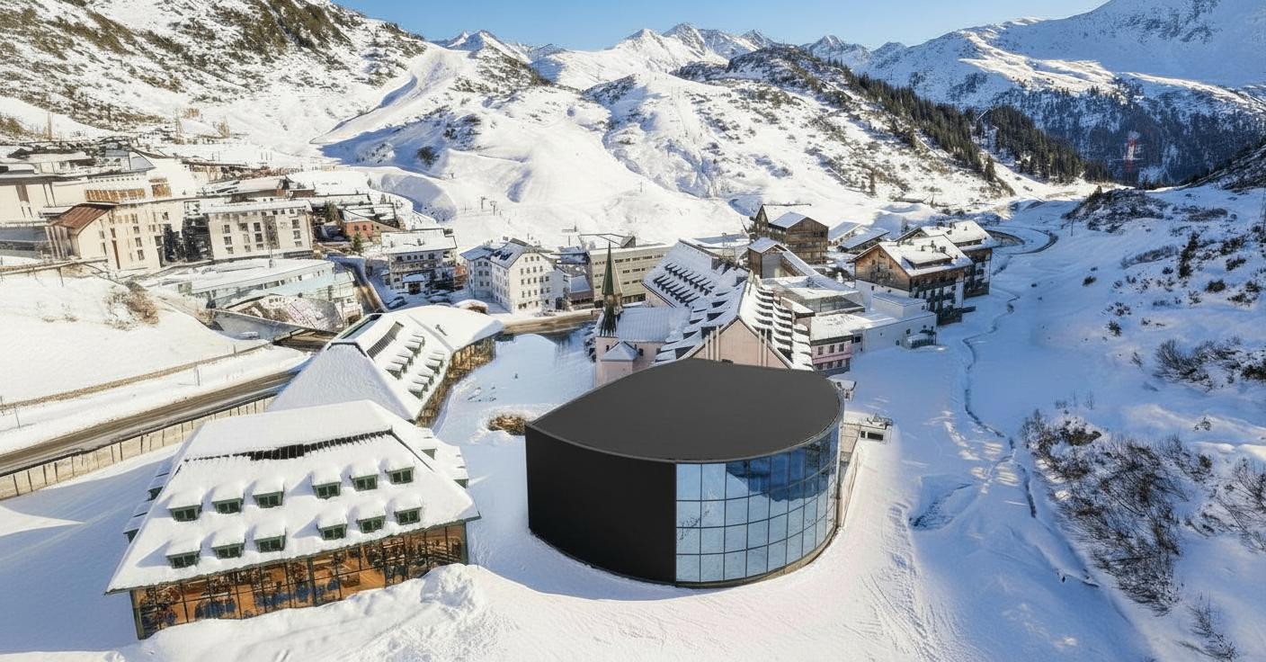 important preserve the existing geometry and the existing context exactly as provided preserve the existing windows do not add new windows do not modify alter reinterpret add remove scale or reshape any geometry do not change the site surroundings street layout neighboring buildings vegetation or context elements do not modify geometry scale proportions buildings road layout sidewalks or surrounding context in any way do not modify text soft sunny noon atmosphere diffused neutral natural daylight with subtle tones cinematic architectural mood large glass surfaces with realistic reflections soft mirror effect environmental reflections of sky and surroundings important do not add new windows