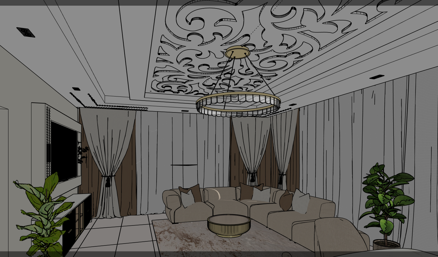 photorealistic interior visualization mode realistic lighting soft shadows global illumination high detail 4k no patterns soft beige textile texture all lighting warm light 3000k consistent warm lighting temperature no cool lighting soft warm ambient lighting