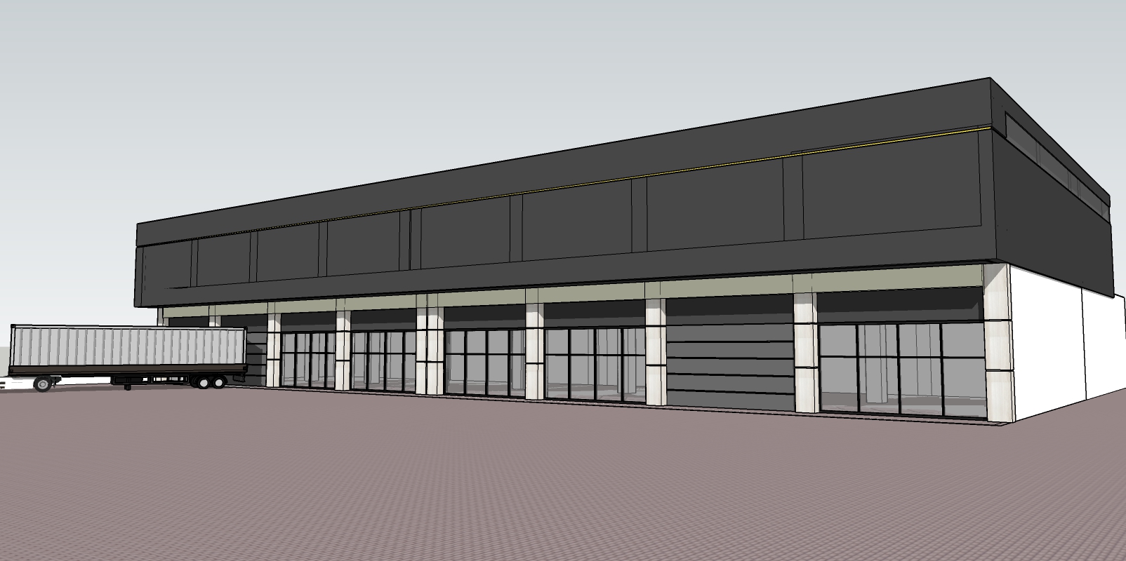 modern warehouse archutectural visualization vray render professional light setup led light large loading park lift and truck