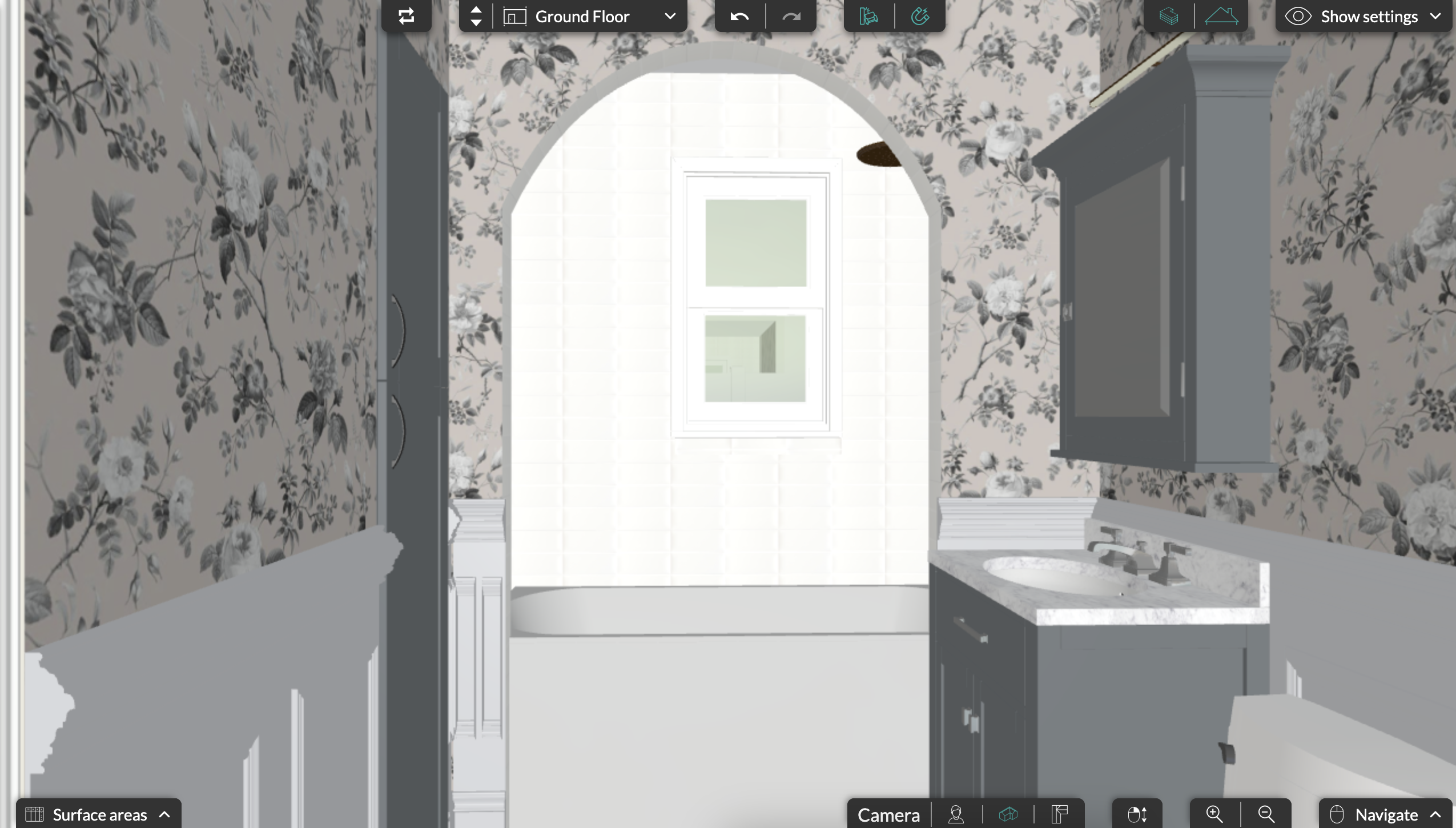 zoom out a bit to show the view from inside the shower with natural light