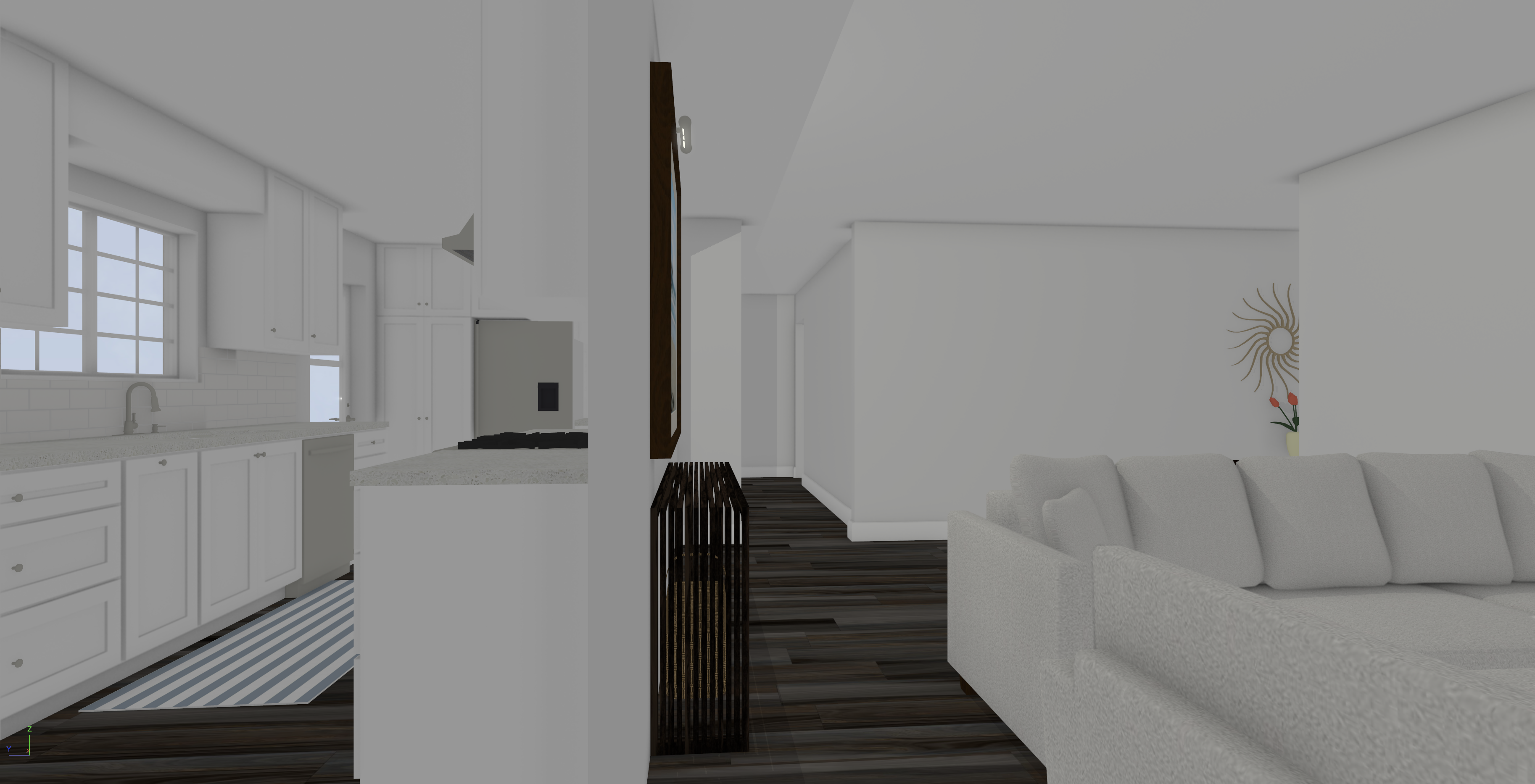 add some art to the walls and darker floors