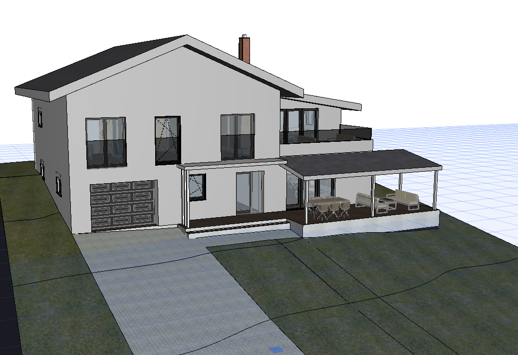 a photorealistic render of a modern style house with clean architectural lines large floor to ceiling windows and anthracite colored window and door frames the house features a minimalist facade with a combination of concrete glass and wood accents surrounded by lush greenery including a well manicured lawn ornamental shrubs and mature trees creating a natural and elegant atmosphere soft natural daylight realistic shadows high detail textures ultra realistic lighting 4k quality architectural visualization professional exterior render