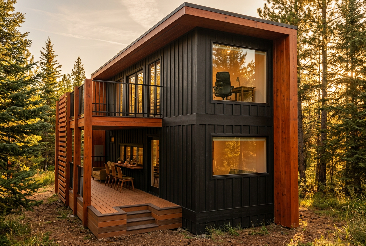 add soft warm sand colors stone to the flat roof wall section render to photo like with warm morning light