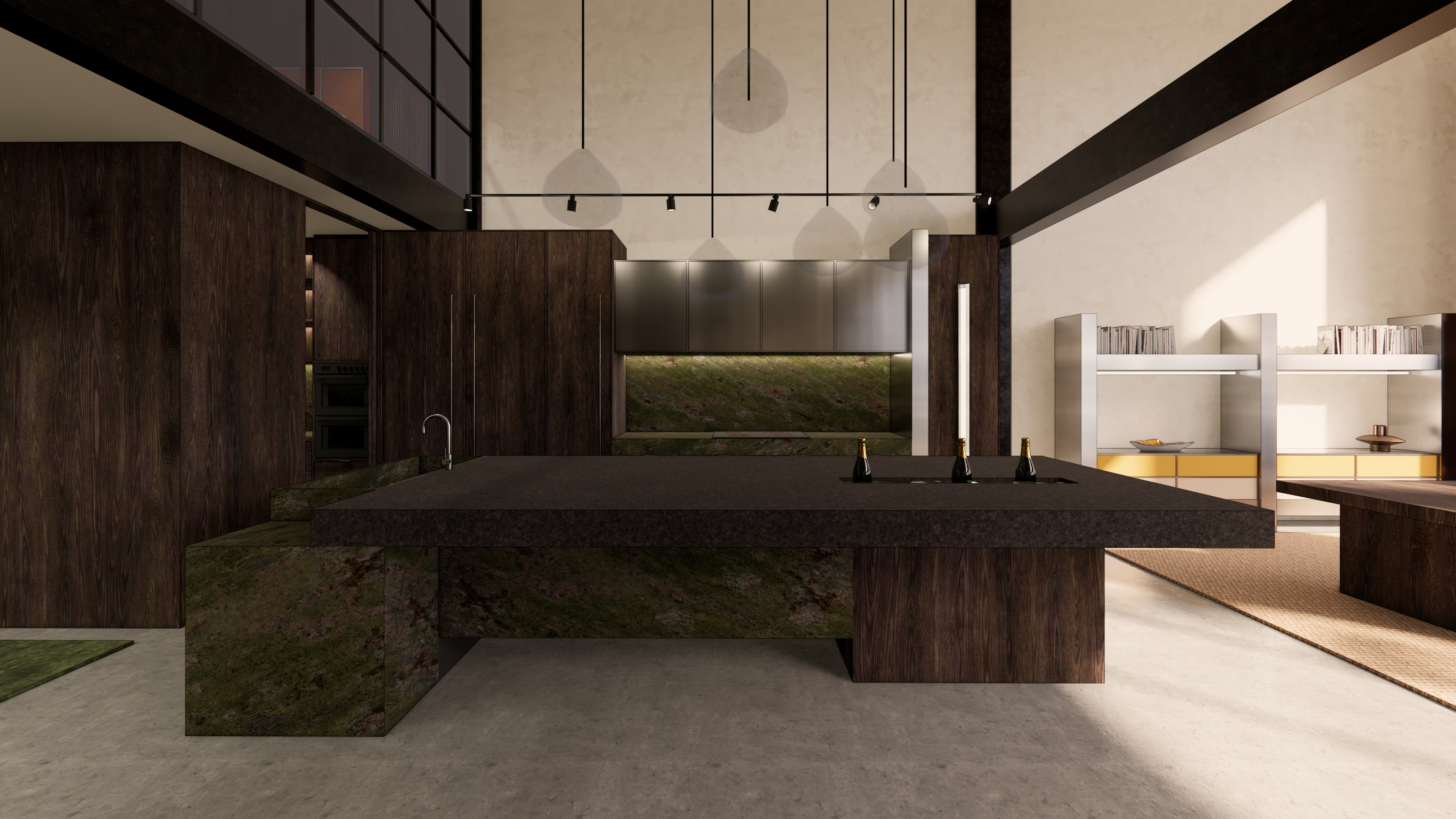 improve the photorealism of this enscape interior render keep all materials fabrics colours and furniture exactly the same no material changes no new objects only enhance lighting natural shadows reflections and exposure