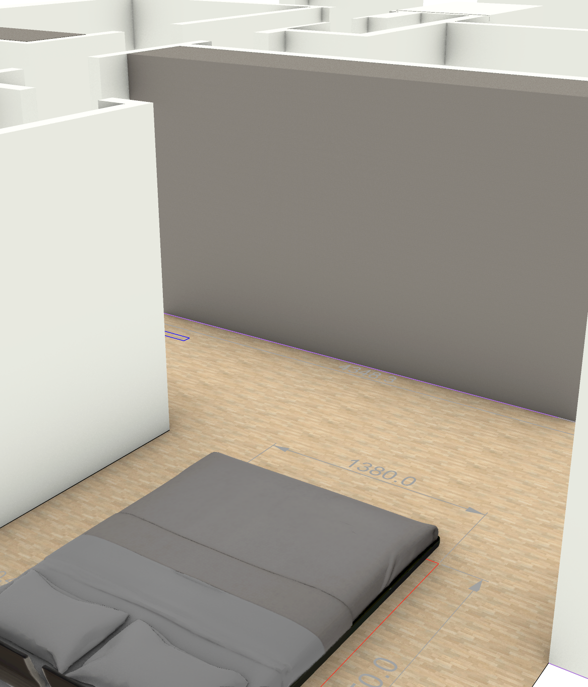 a square bedroom with plastered walls and oak floorboards with two single beds next to each other