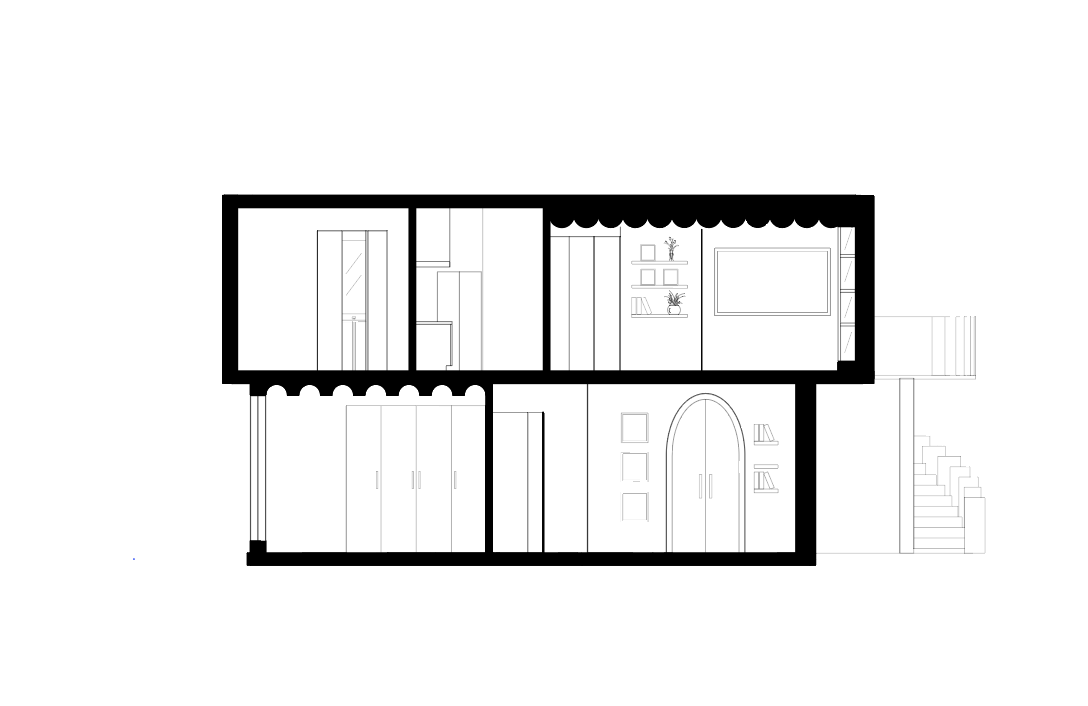 do not render this as an axonometric elevation or drawing render it as a real photograph of a sliced building make the back not transparent and place the home in an la environment edit as a section cut of an interior not outdoor