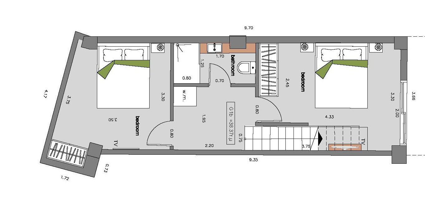 convert this floor plan into a architectural isometric 3d view of a full house show the space from an elevated angle with furniture walls and details visible use the same furniture as shows on the plan do not change the orientation of the floorplan