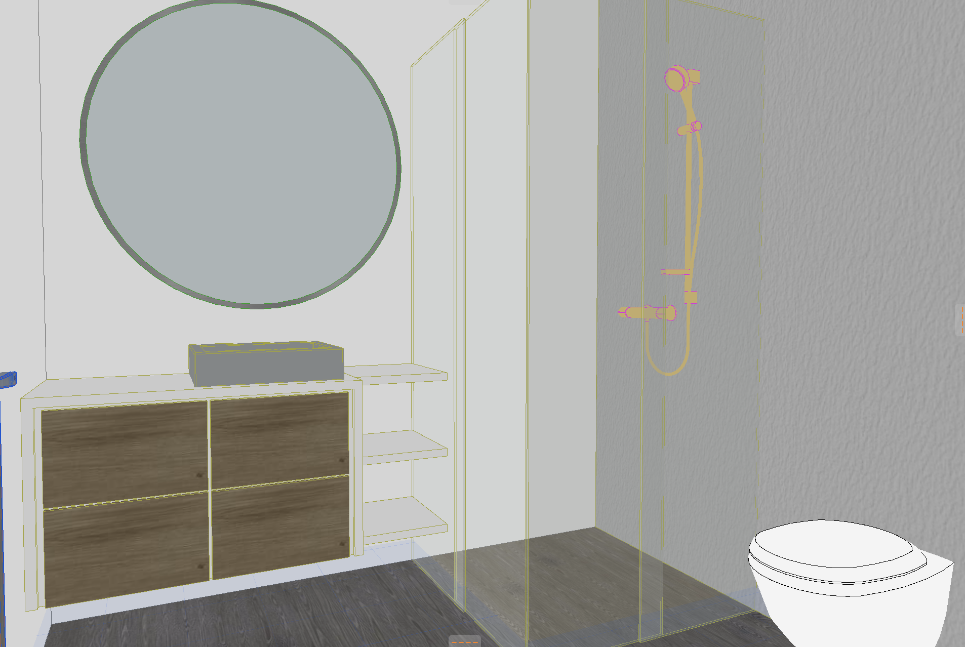 add the buttons above the toilet add a led strip around the mirror
