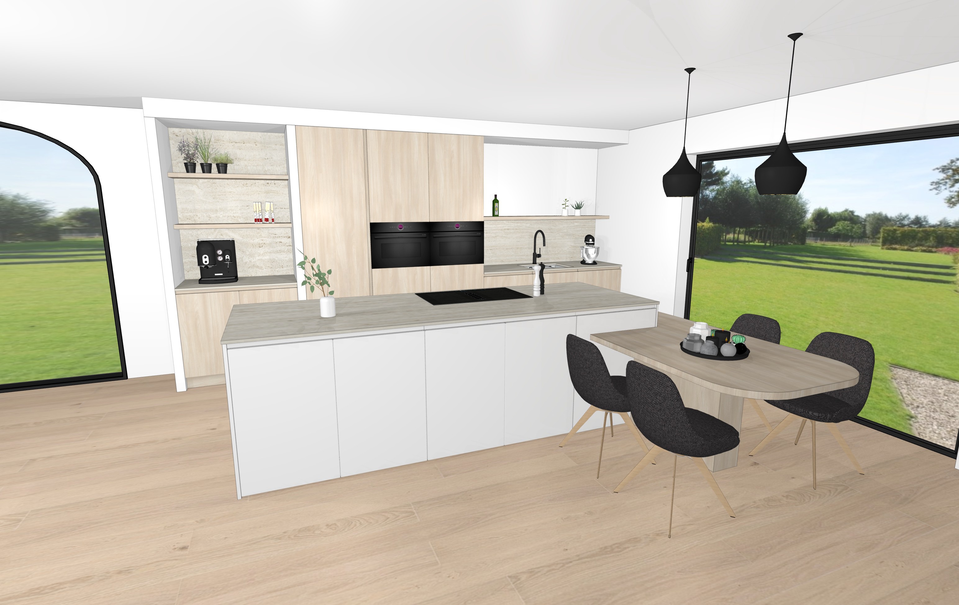 a soft light underneat the floating shelfs on the wall