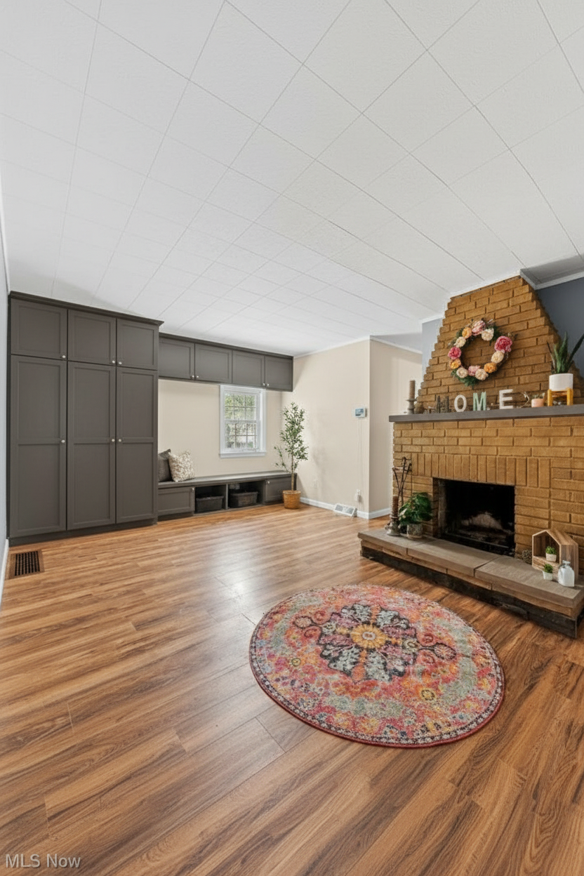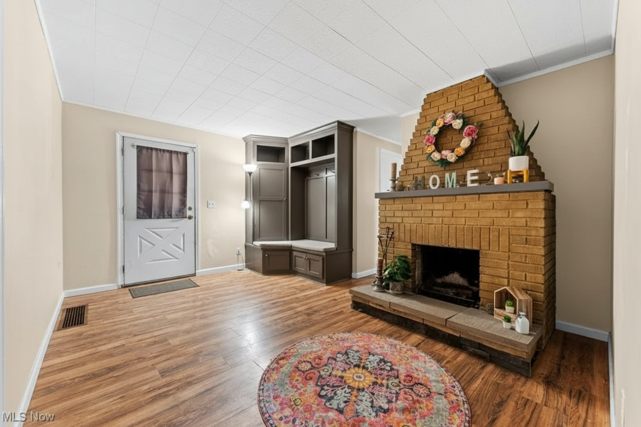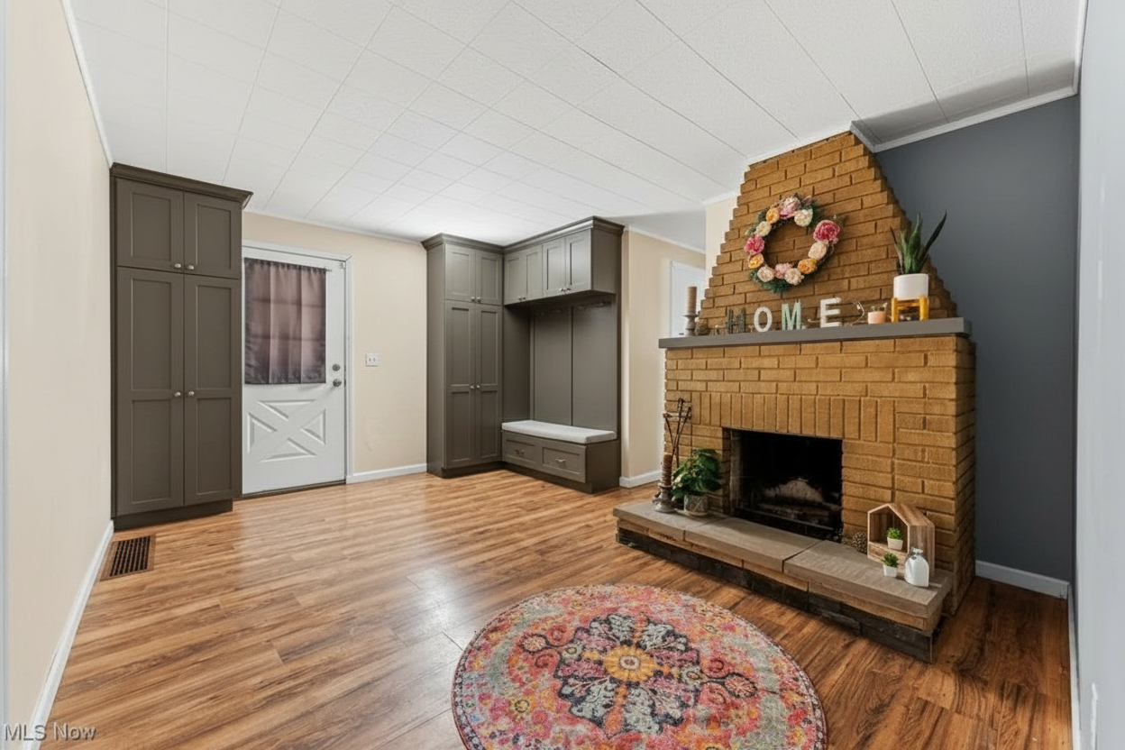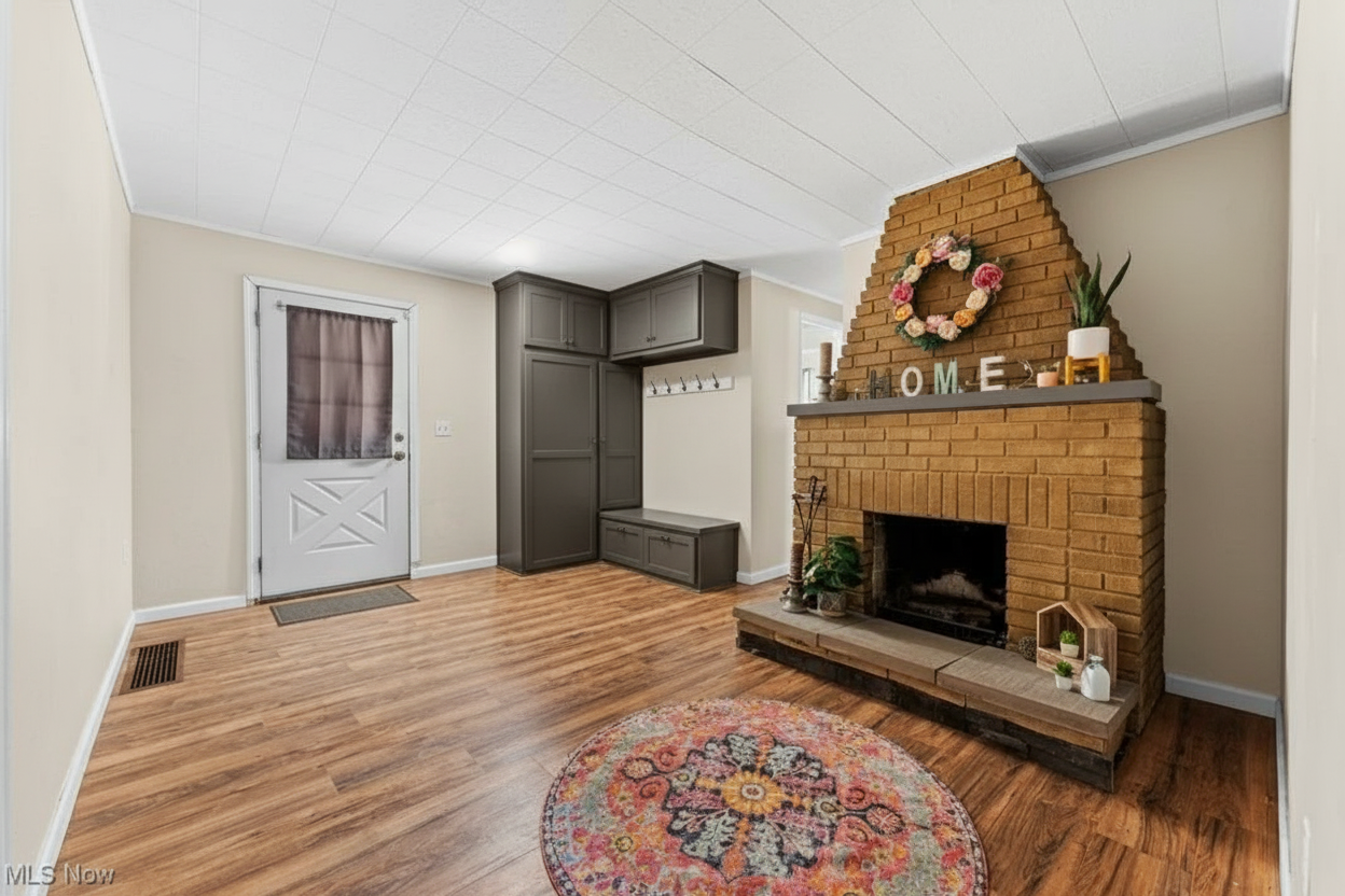 remove the items on the fireplace remove the rug paint the fireplace grey