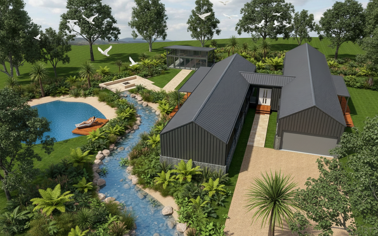 a beautiful mediterranean villa with stucco walls in soft beige featuring large arched windows with dark frames the lush garden is filled with vibrant lavender ornamental grasses and neatly trimmed green shrubs classic terracotta pots hold small trees adding to the rustic charm the pool reflects a rich azure blue under the clear sky the pergola is adorned with cascading pink bougainvillea the overall atmosphere is serene and inviting with a touch of elegance