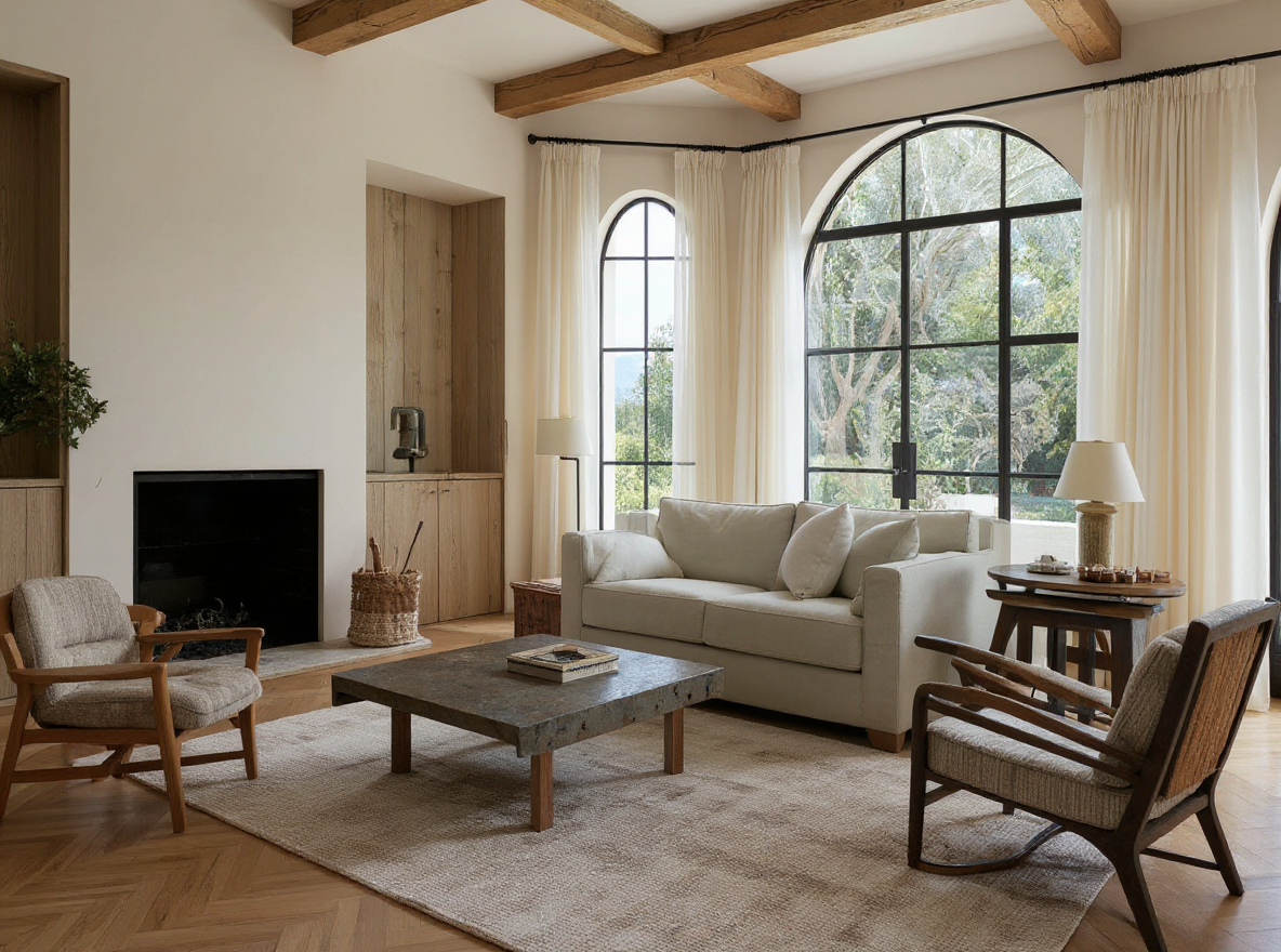 add closed sheet beige drapes over the all black windows