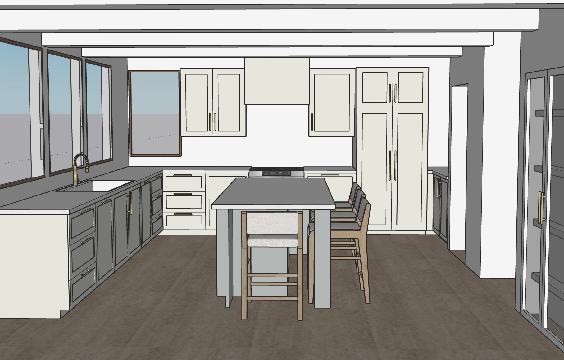 change cabinets to white with brass fixtures change table to a darker blue kitchen island