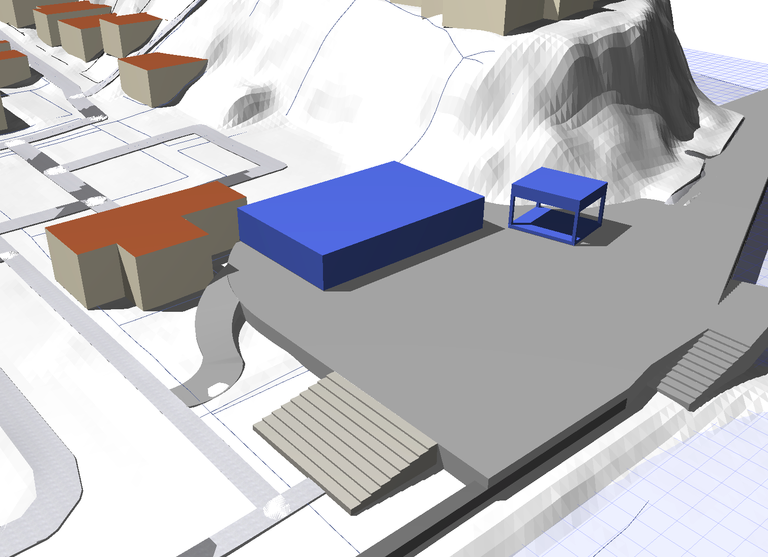 can you create a very simple massing diagram showing the blue boxes as existing conditions more simple please