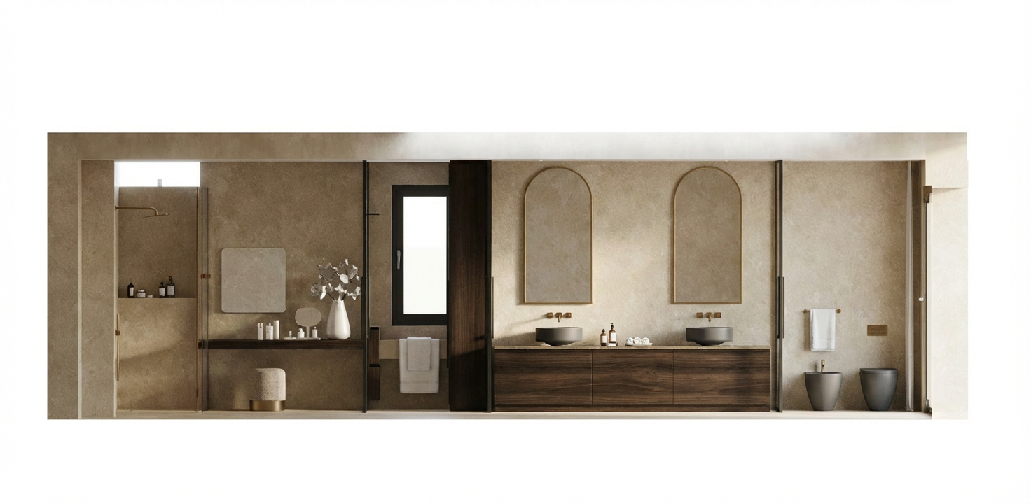render a beautiful and modern apartment with red brck exterior and black metal accents and cladding ensure large and beautiful windows with copious light render landscaping and greenery on the balcony include plants and posh furniture