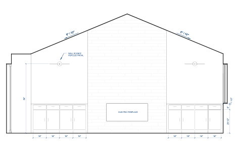 this is the view of the fireplace from the master bedroom there are picture lights on the side of the fireplace cabinets are white oak do the fireplace in a darker tile place floating shelves with decor under sconces