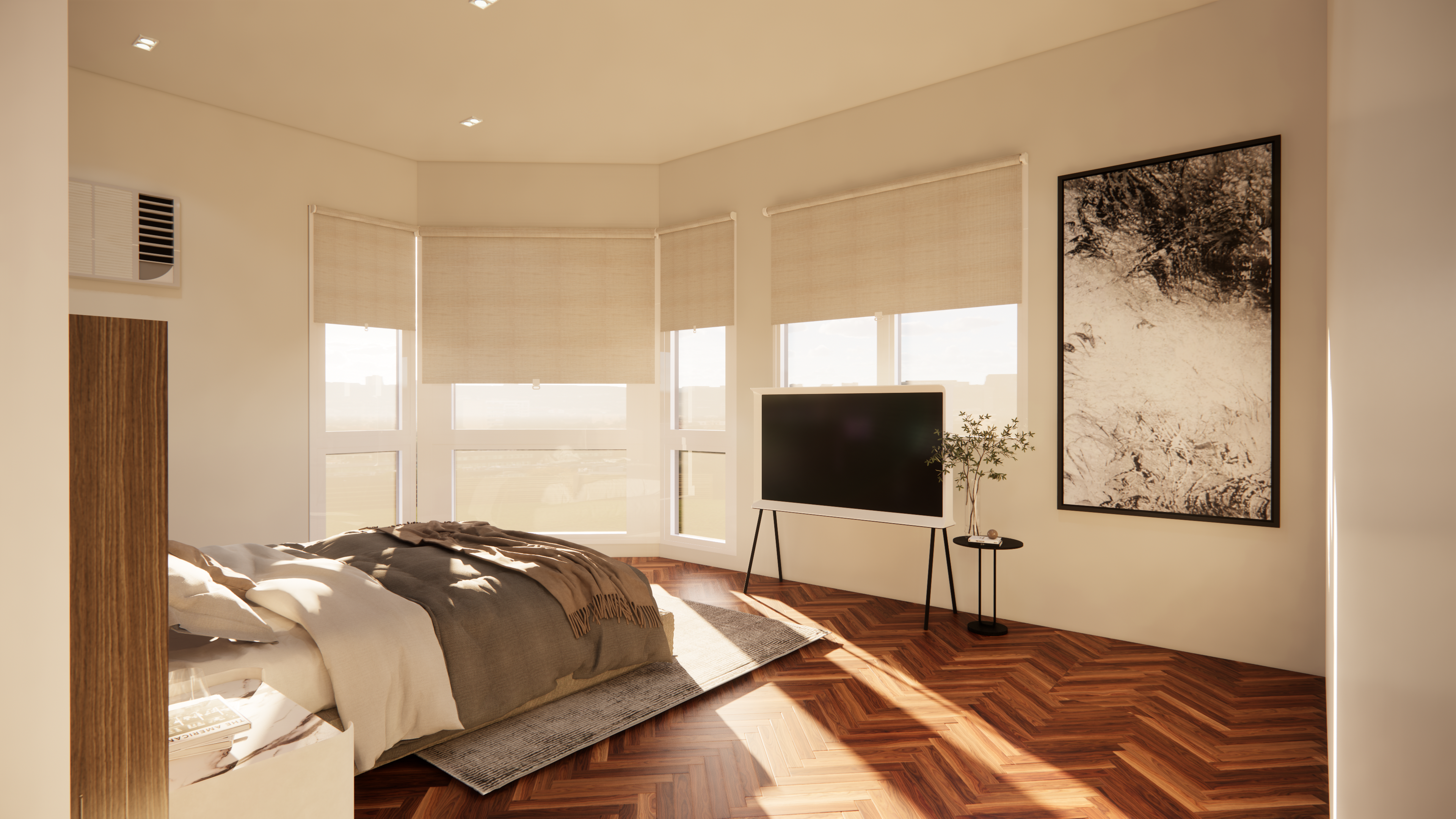 remove the wood slat panel retain existing windows put lounge chair on the right side of tv